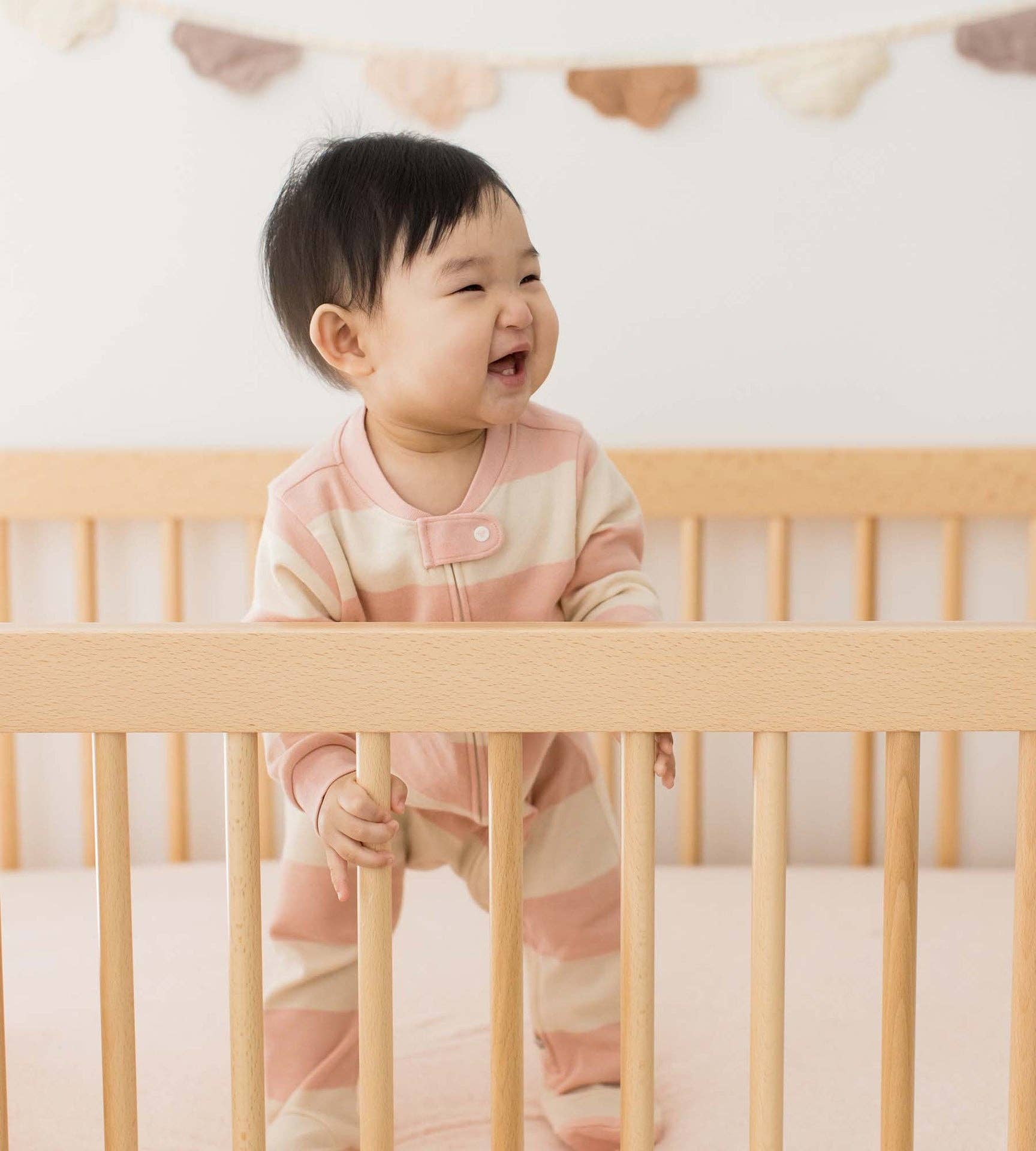 Rugby Stripe Organic Cotton Sleep & Play in Pink Sand