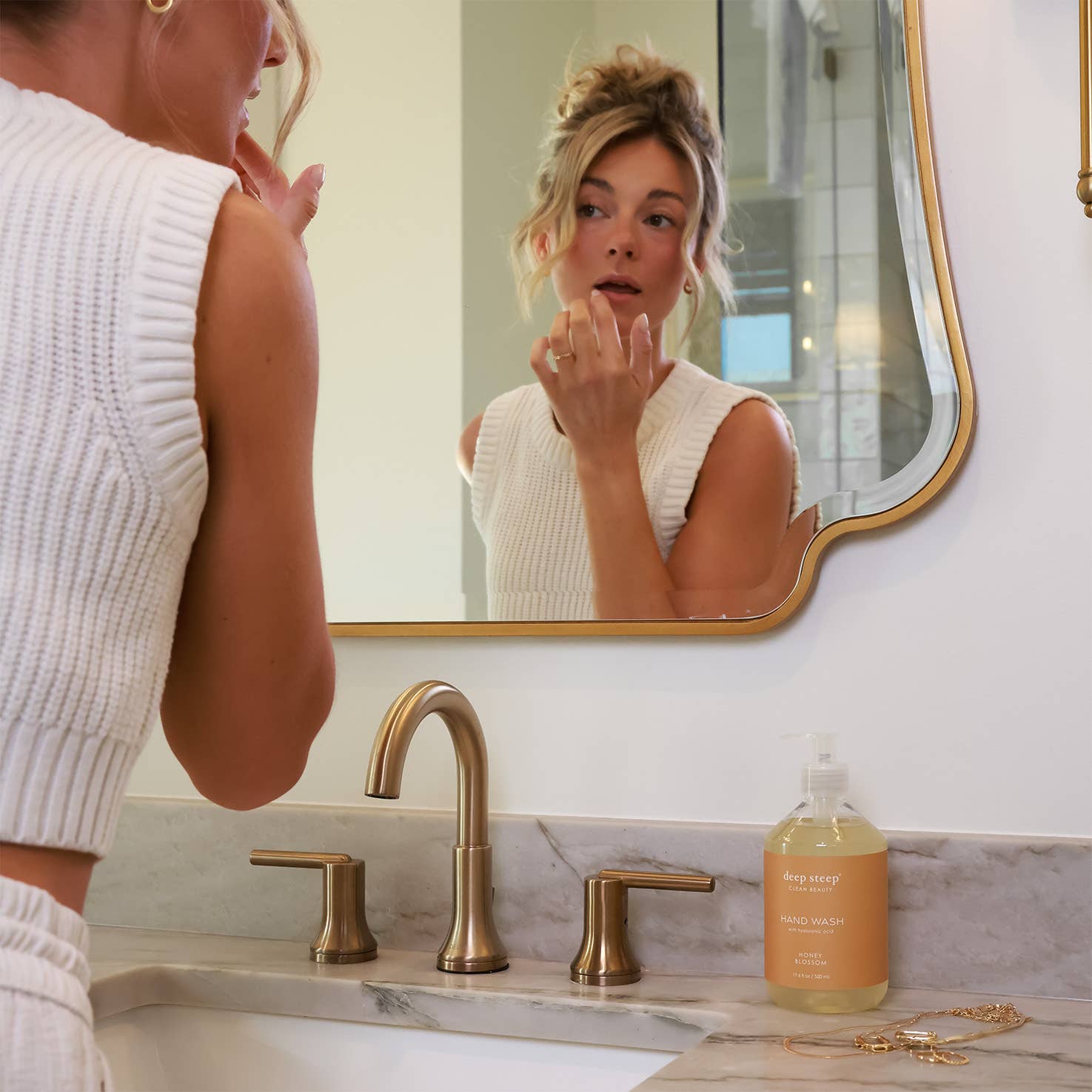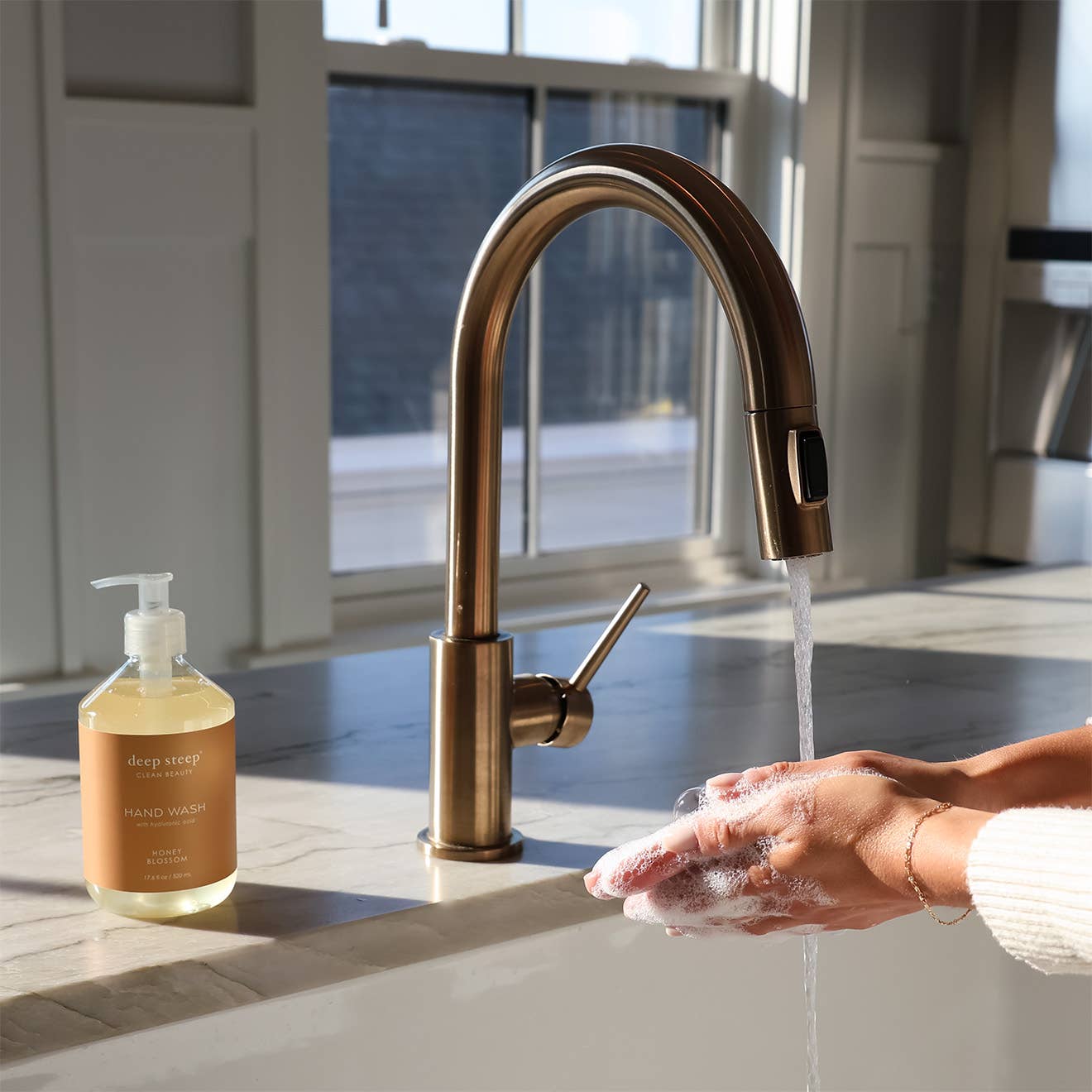 Honey Blossom - A must for those that love the true aroma of fresh orange blossom honey. Treat yourself to a cup of heartwarming tea and honey. Deep Steep’s rich lathering Argan hand wash provides gentle cleansing while moisturizing with oils of Argan, and Olive. Leave your skin feeling soft, smooth, and delicately scented. Our luxury hand washes offer a rich indulgent lather that never dries out your skin. Lather rinses cleanly and completely. No sticky residue, gentle enough for the most sensitive skin. Cruelty-Free, 17.6oz.
