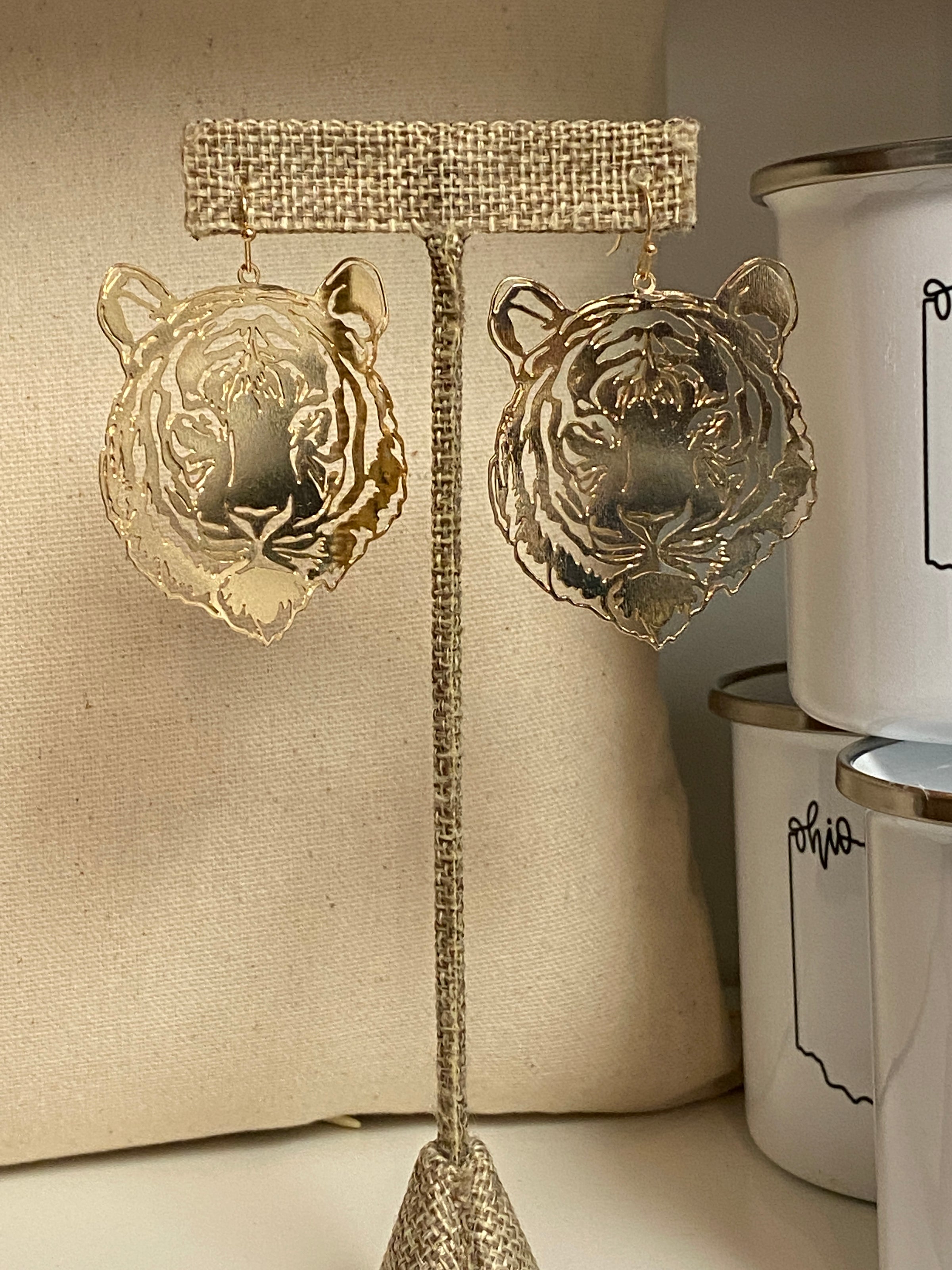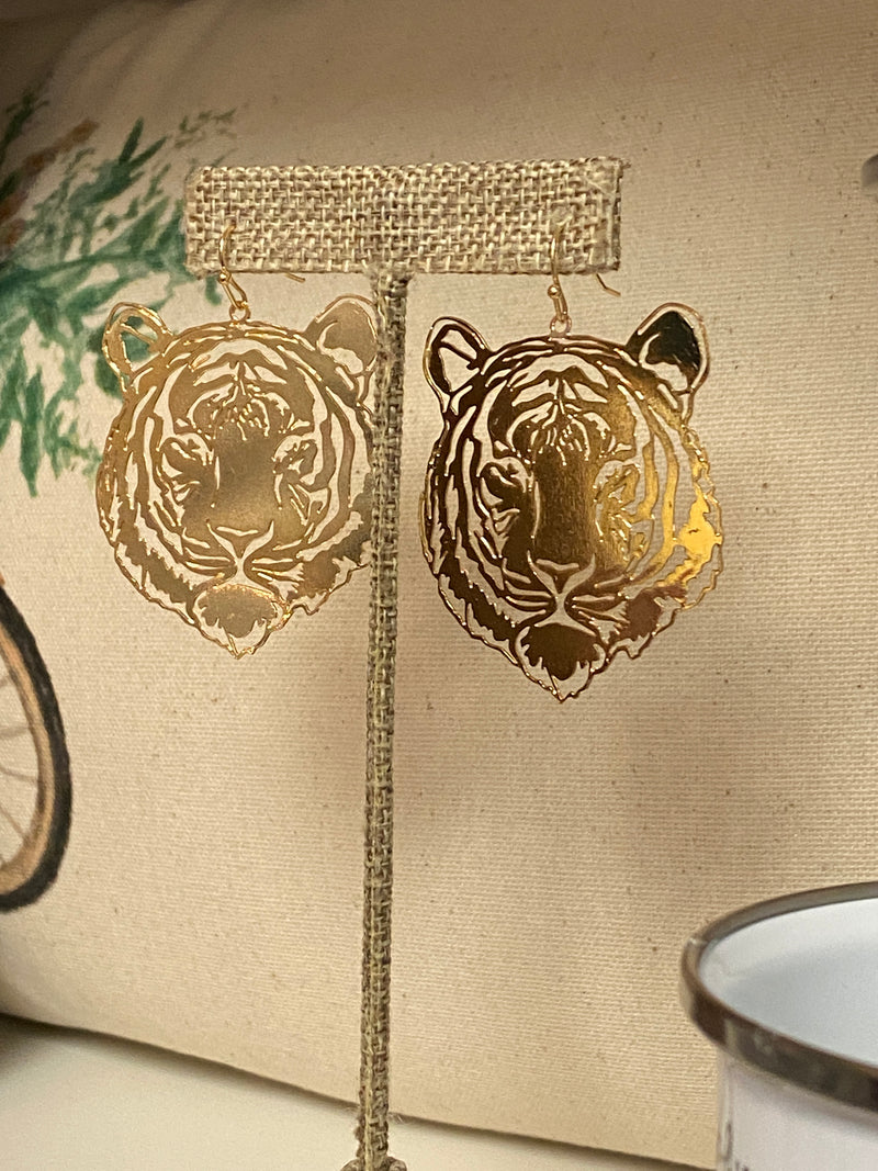 NEW! Laser Cut Bengal Tiger Face Dangles in Gold