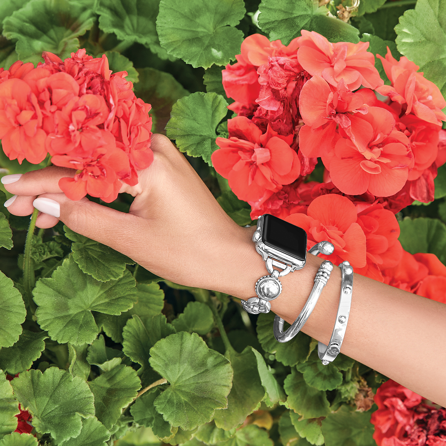 Designed to fit your Apple Watch®, this decorative large, polished “bold” studs from this collection create a smart watch band that really gives the “jewelry” look - this is a style that looks just as much “bracelet” as it does watch band. It offers three fold-over clasp extenders for adjustability, and fits 38 mm case size and larger