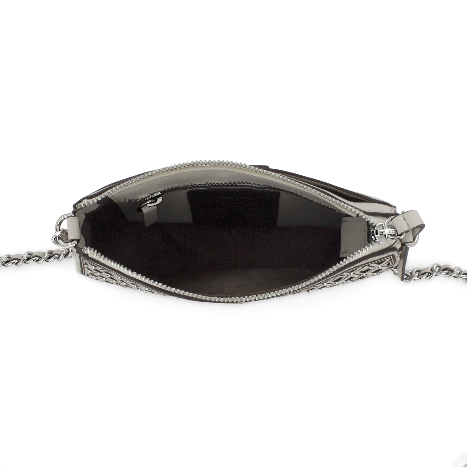 Lasered, die cut, laced and heavily stitched - this fine leather compact bag is filled with crafted features while practical with enough room for your essentials. Studded details accentuate each die-cut diamond. Casual yet strikingly worthy of conversation, it is inspired by the Venetian squares of Northern Italy. It's perfect for concerts, dining out or just as an everyday go-to.