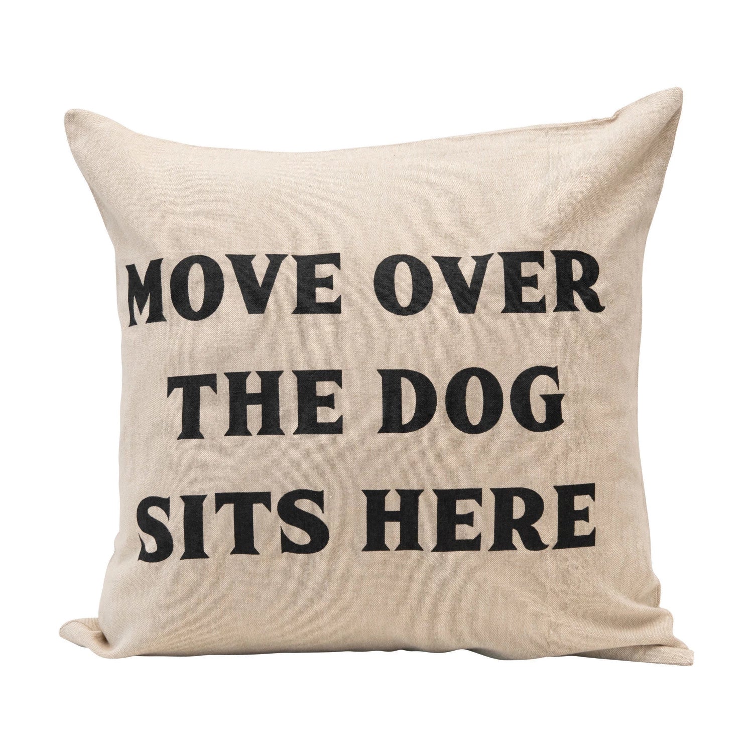 18" Square Cotton Pillow "Move Over, The Dog Sits Here", Down Fill, Natural & Black