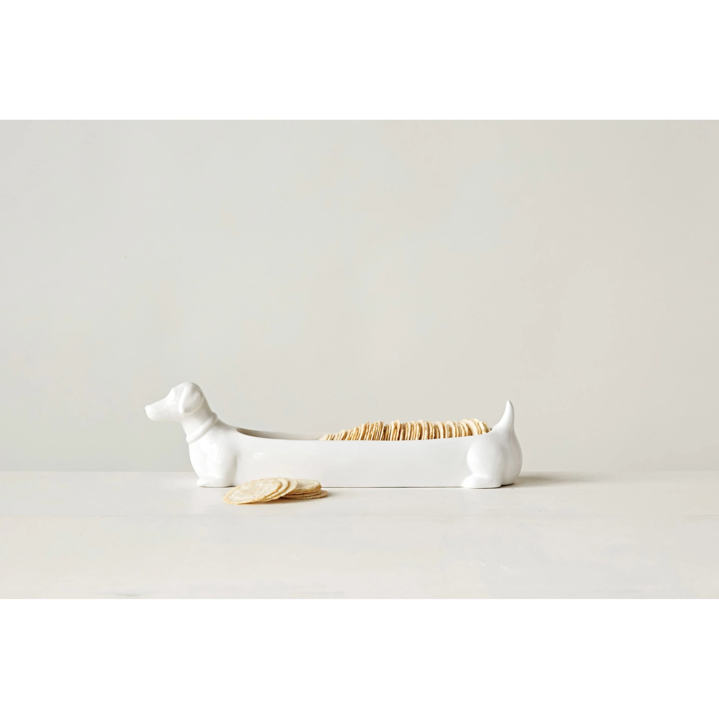 Ceramic Dachshund Cracker Dish, White