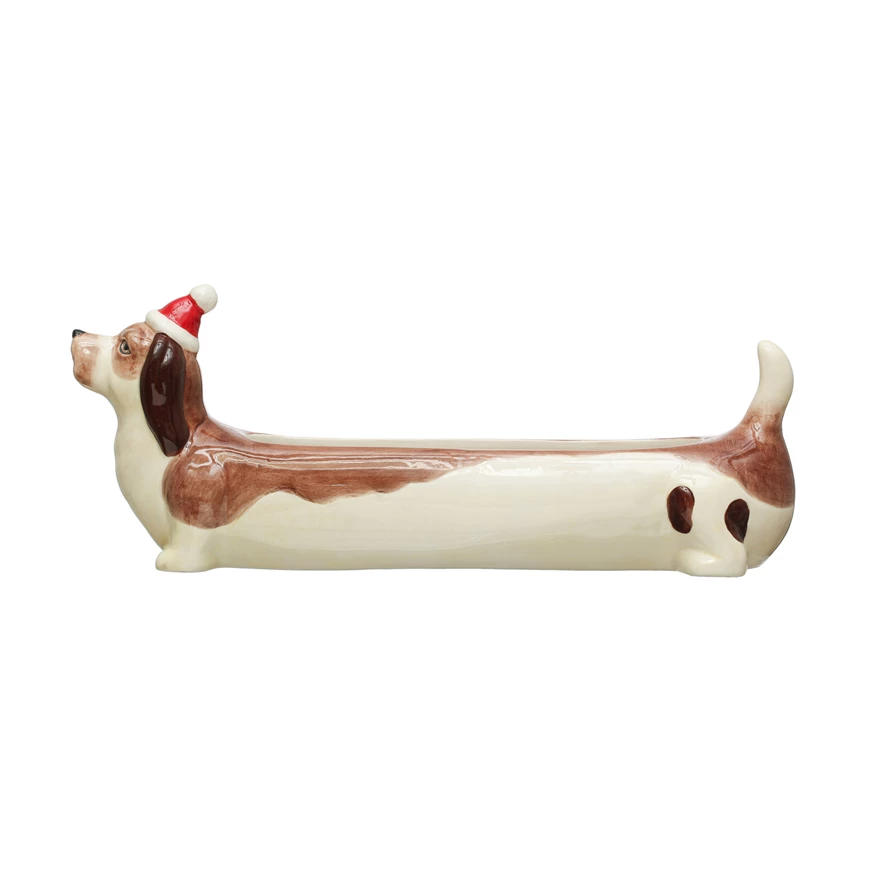12-3/4"L x 3-1/4"W x 5"H Hand-Painted Ceramic Dog Cracker Dish, Multi Color