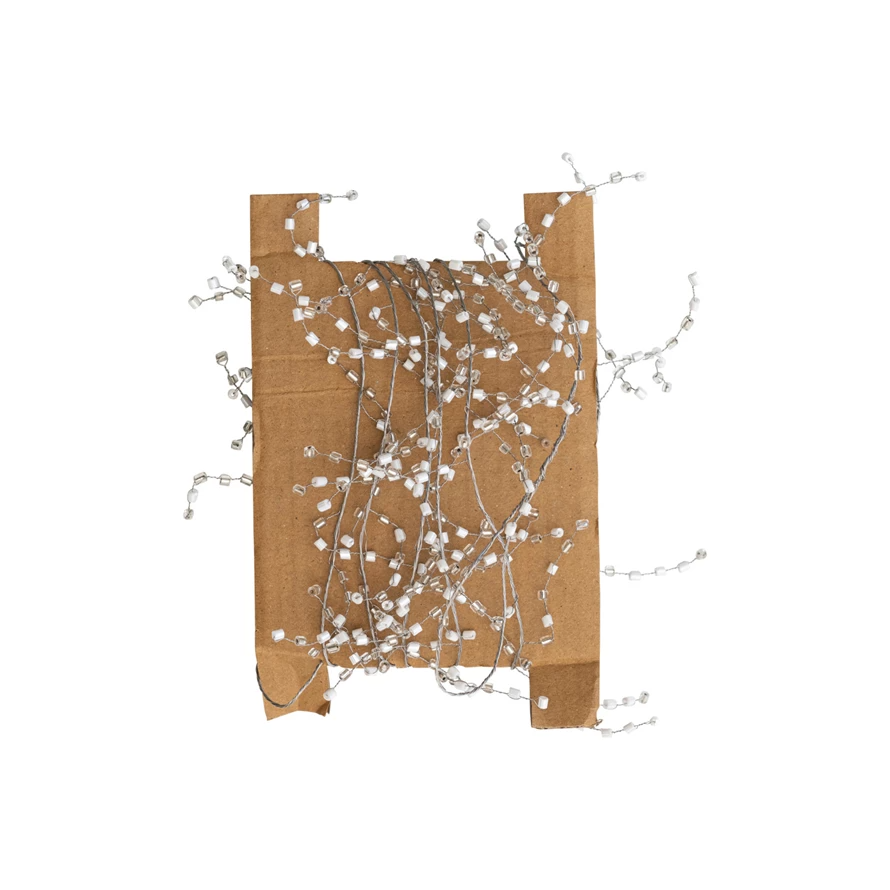 Metal & Glass Seed Bead Garland, White, Clear & Silver Finish