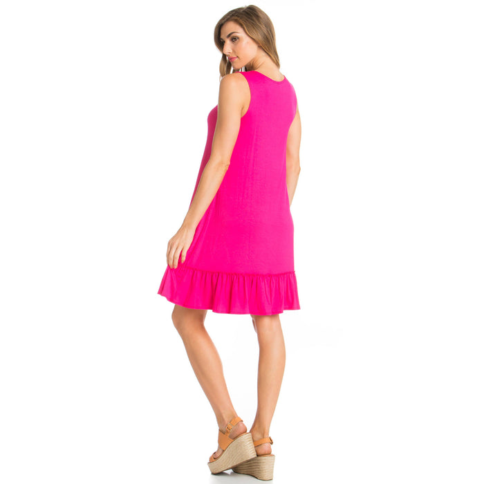 Lace Edge Split Neckline Woven Top in Fuchsia