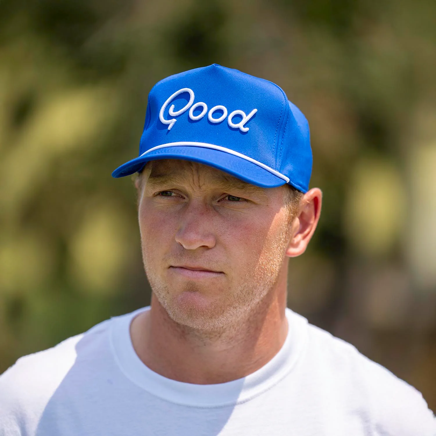 5 Panel Construction: Highlighting the embroidered Good logo with one front panel.