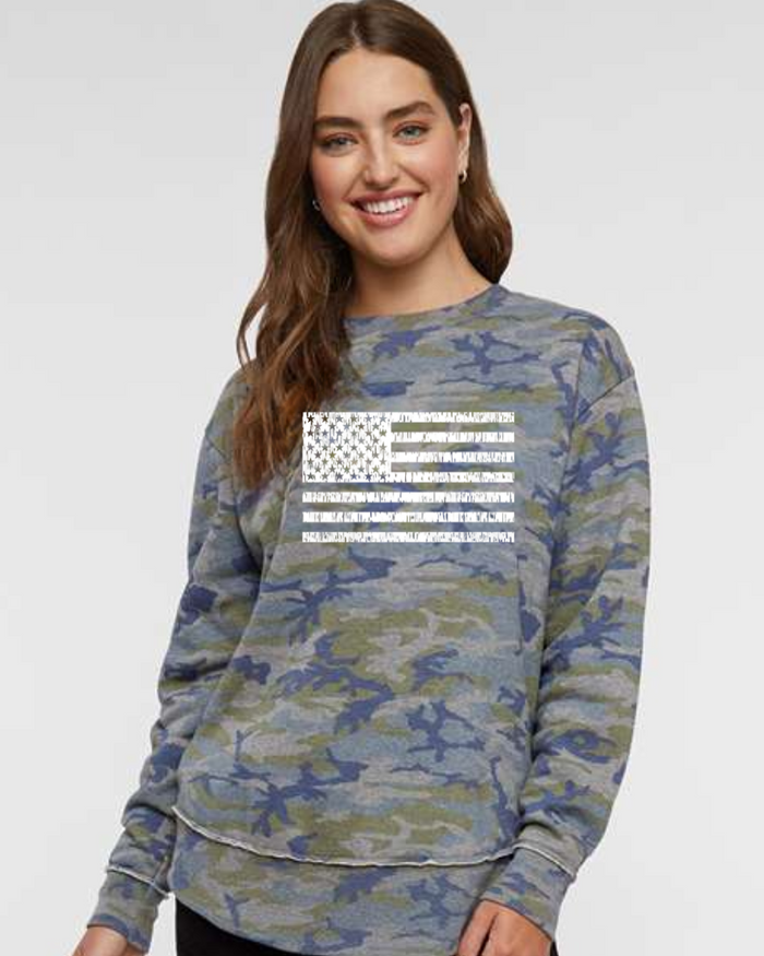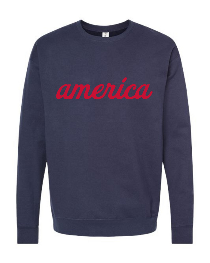 Vintage American Flag Crewneck Sweatshirt on Heathered Navy