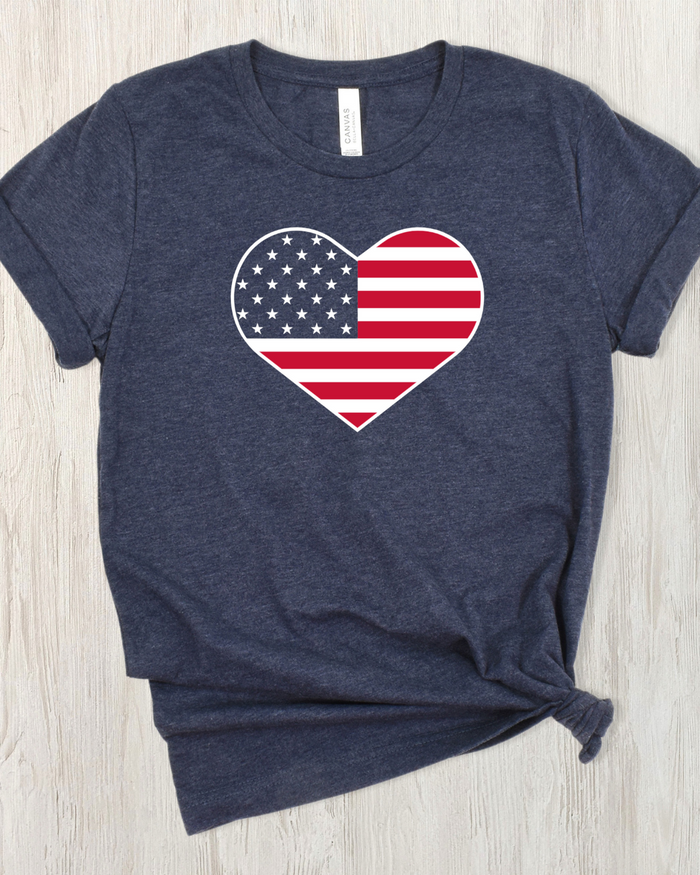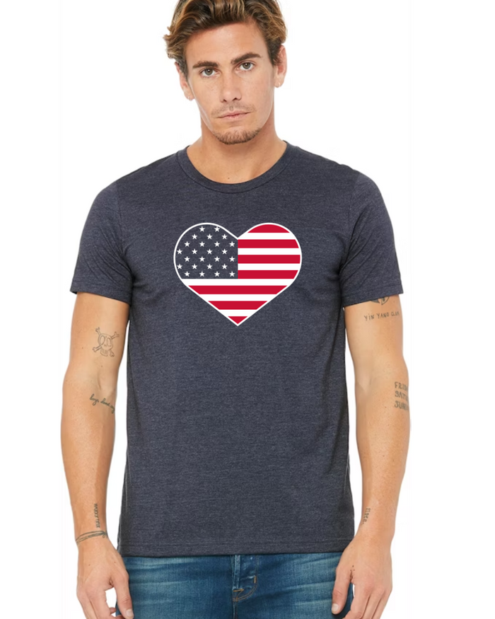 Women's Flag Heart Cropped Racerback Tank on Heather Navy