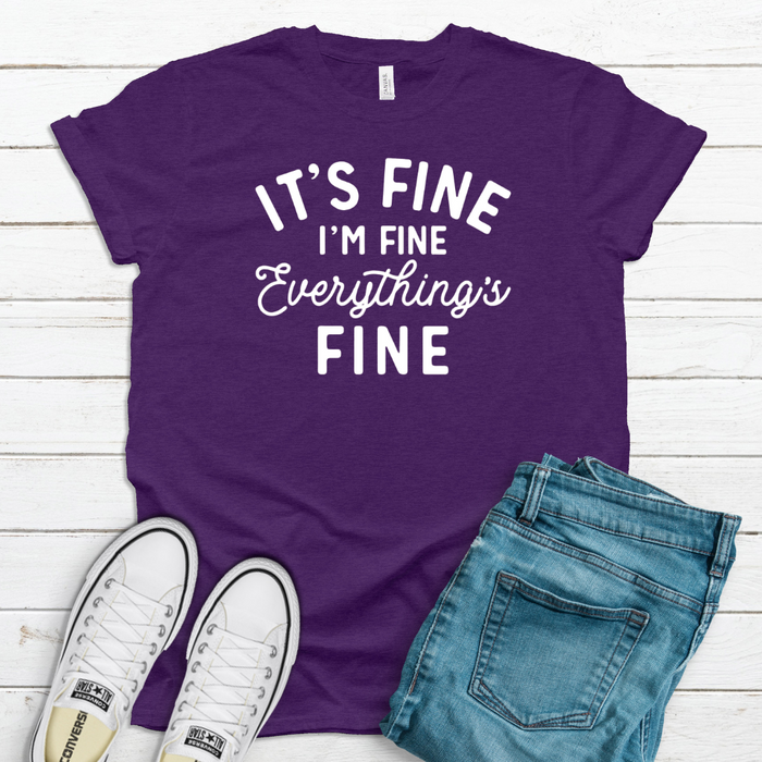 It's Fine, I'm Fine, Everything's Fine T-Shirt on Heather Team Purple