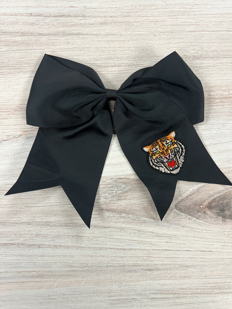 Tiger Face Patch Hair Bow- Black