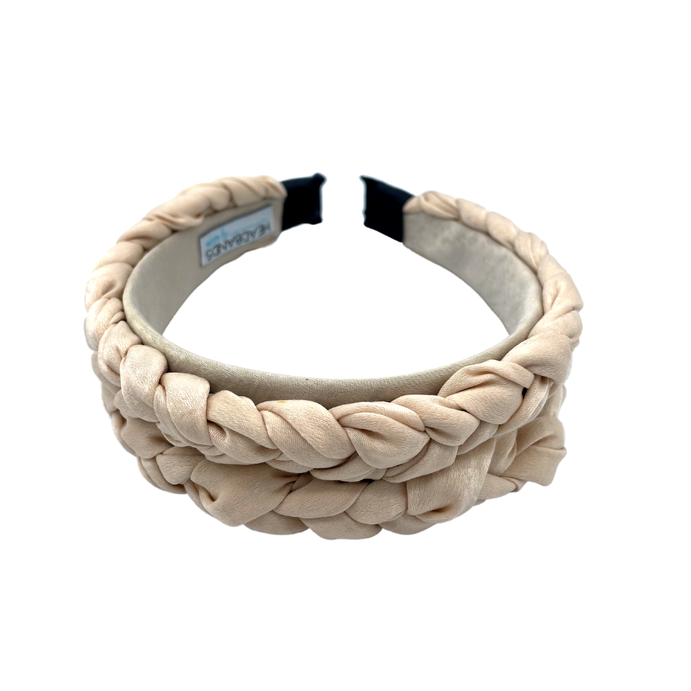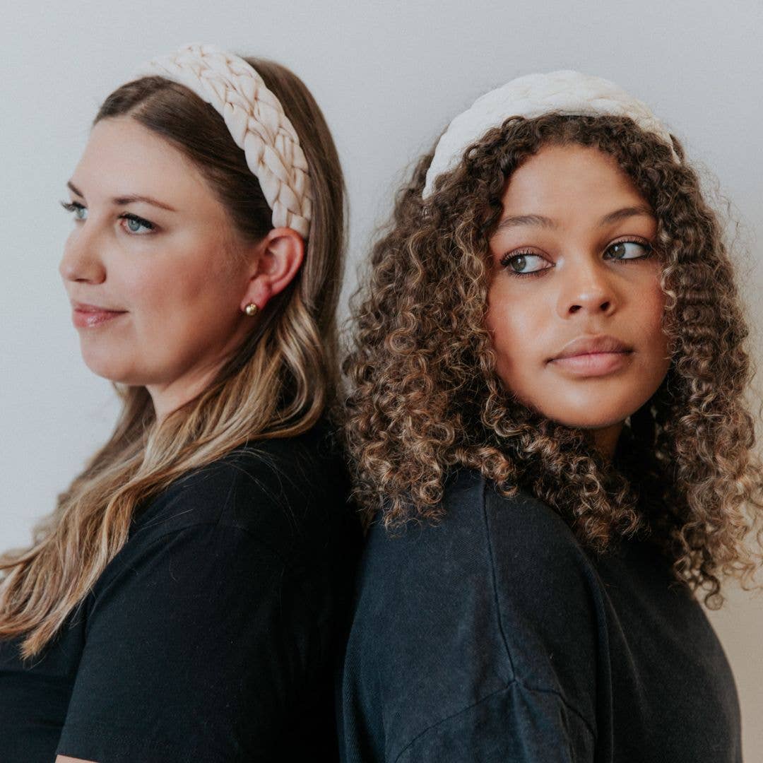 Pull back your hair with this traditional headband in teal. Majestic and easy to wear, it's the perfect sassy and trendy accessory. Our Blushing Braid Headbands are at the top of any trend with its beautiful double braid along the band! Available in many colors and prints! Measures 15" from End to End. 1.75" Width. Shimmery Fabric. Double Braid Design. Padded ends to cushion behind the ear.