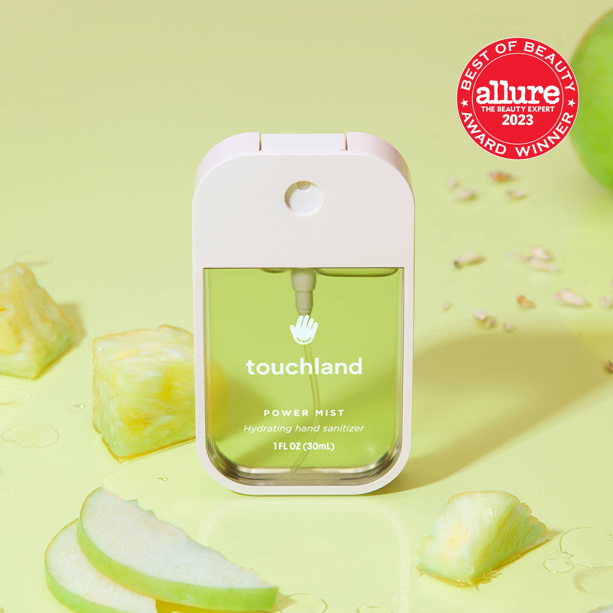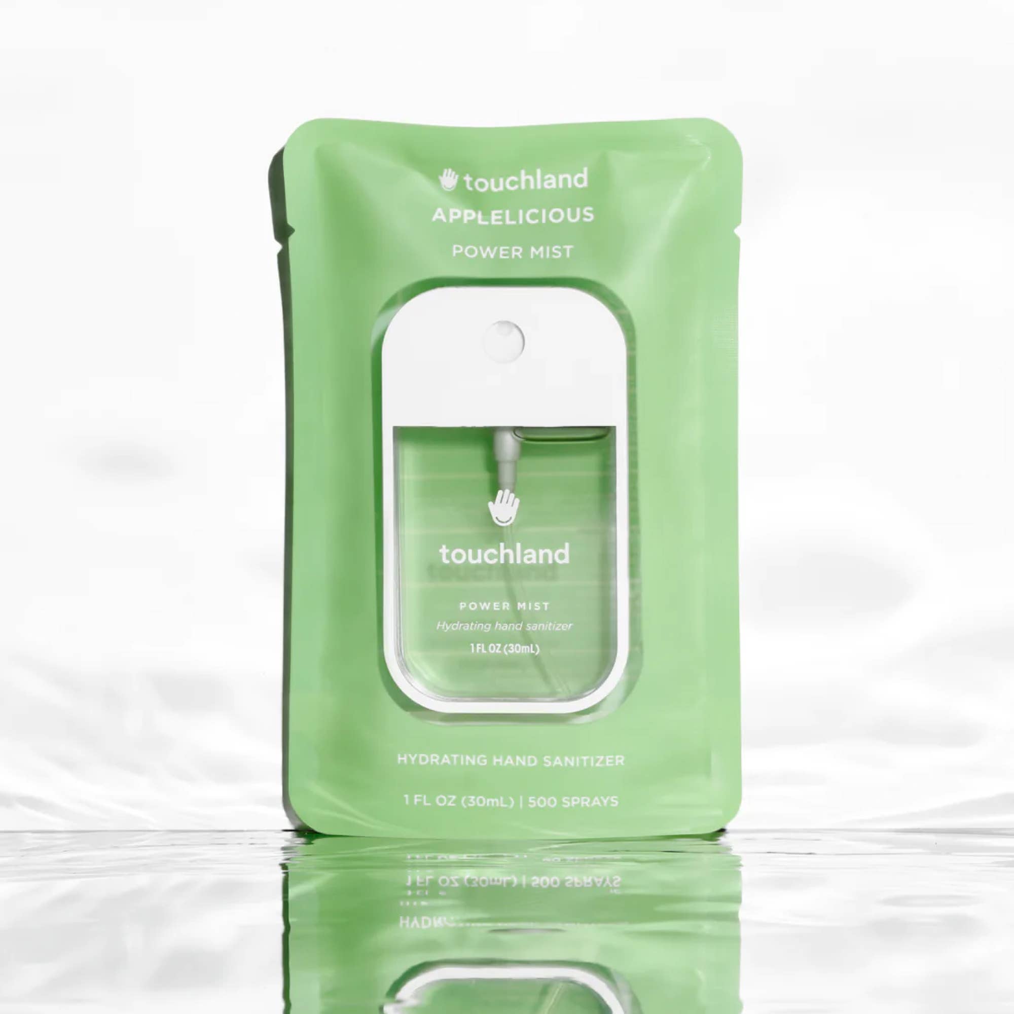 The award-winning hydrating hand sanitizer mist that feels as good as it looks. Applelicious Scent: A fun, fruity and floral explosion of granny smith apples, fresh picked pears and tender apple blossoms against a background of transparent musks. TOP NOTES: Granny Smith Apple, Fresh Picked Pears, Pineapple Juice. HEART NOTES: Apple Blossom, Freesia Petals, Lily of the Valley. BASE NOTES: Transparent Musk, Creamy Sandalwood, Cedarwood. Hydrating. Fast-absorbing. Vegan. Cruelty-free. Dermatologist tested. Effective against most common germs. 500 sprays. 1FL OZ (30ml). TSA-approved. Say so long to sticky, goopy hand sanitizers, and hello to our really good, really cute hand sanitizing mist that not only cleans your hands, but makes them soft to touch, and smell good, too. Every bottle of Touchland Power Mist is packed with good-for-you, vegan, and not-sticky ingredients like Aloe Vera and essential oils that spritz lightly and evenly to keep your hands happy.