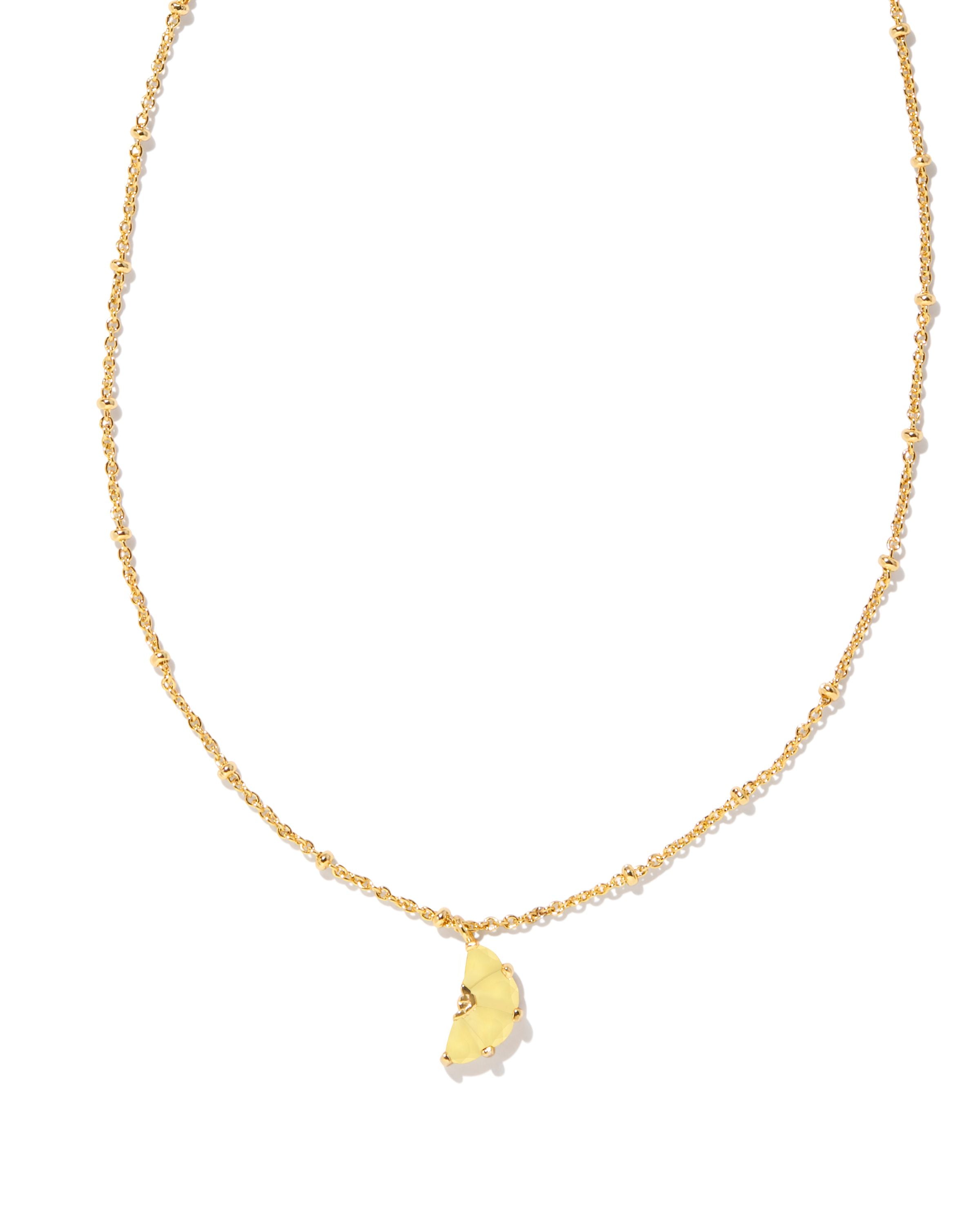 When life gives you lemons, wear the Lemon Gold Short Pendant Necklace in Yellow Opalite Glass. Featuring a petite lemon charm on a dainty gold chain, there’s nothing sour about this style. It’s playful, petite, and perfect for adding some personality to your stack