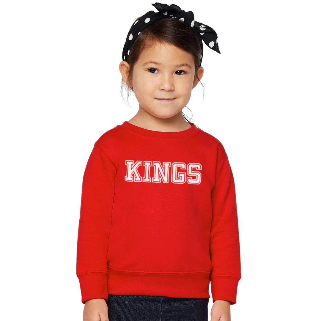 Cuddle up with warmth and style in the Kings Block Sweatshirt! This bright red shirt is perfect for all kids looking for a comfy way to stay warm or just ready for a fun, unisex day of fun. Keep cool and cozy in this classic piece!