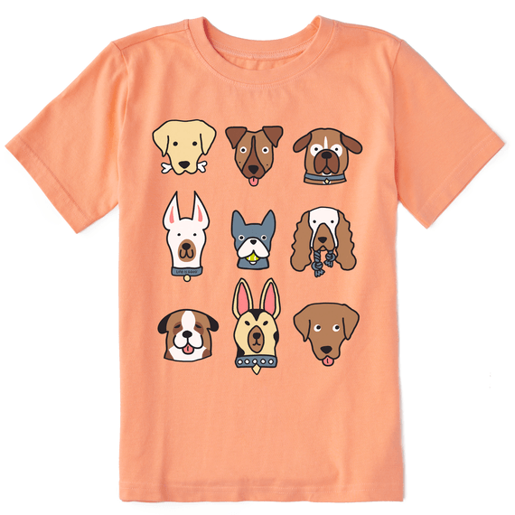 Kid's Short Sleeve Crusher Tee Plenty of Pups in Canyon Orange