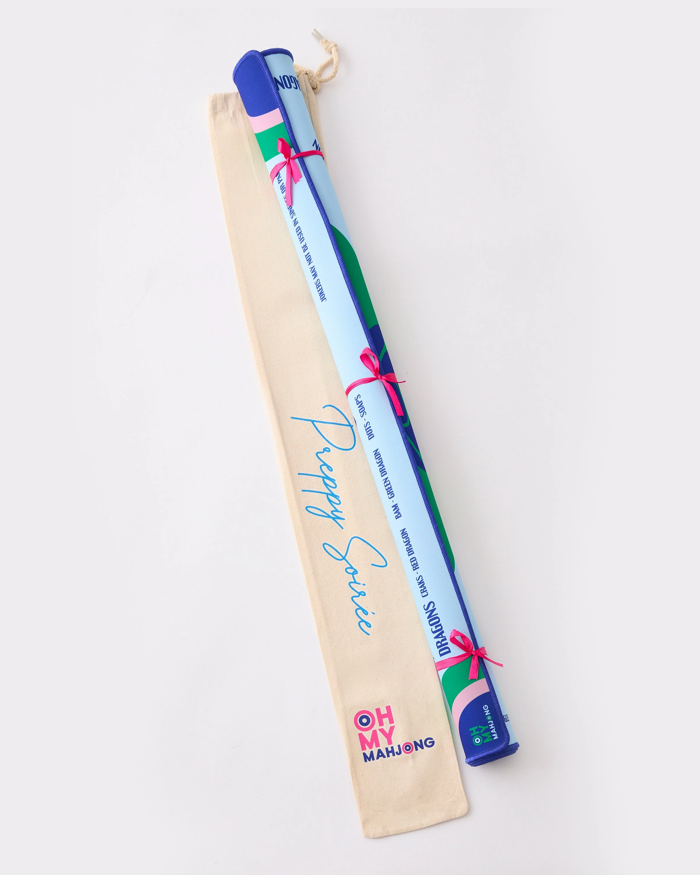 The perfect addition to your game night shenanigans! Not only does this mat scream style with its preppy color scheme, but it's also super functional. Featuring a non-slip surface, it ensures your tiles stay put as you play like a seasoned pro. Plus, it includes essential rules for American Mahjong, covering everything from directions of The Charleston, suit and dragon pairings, gameplay and wall direction and the pesky no jokers in a pair rule.