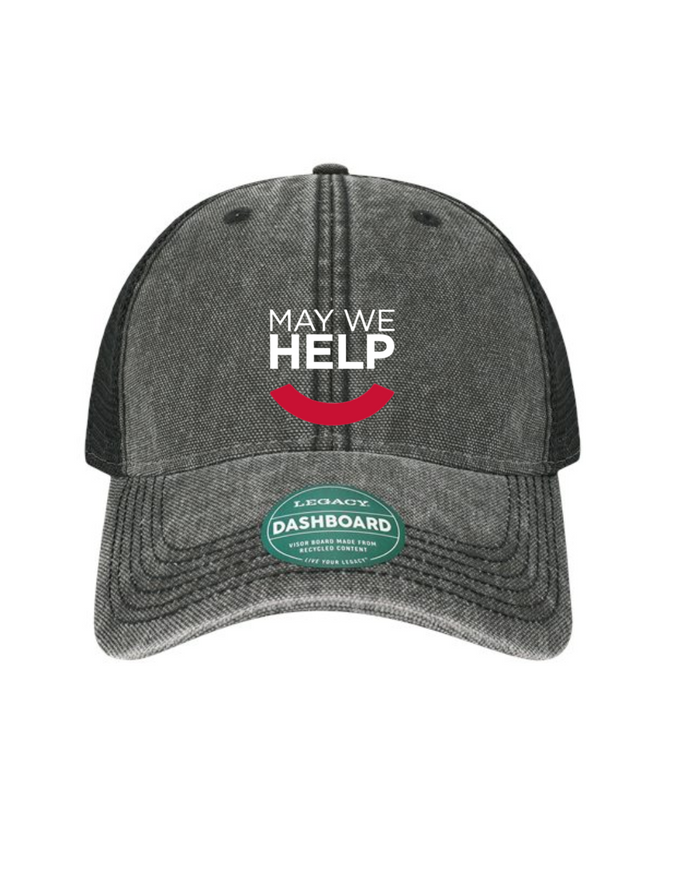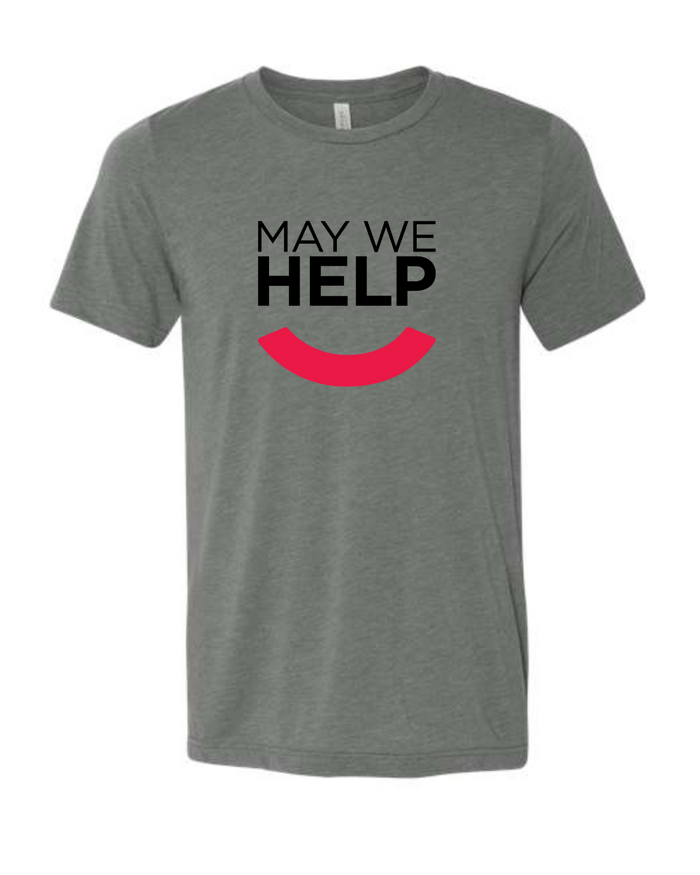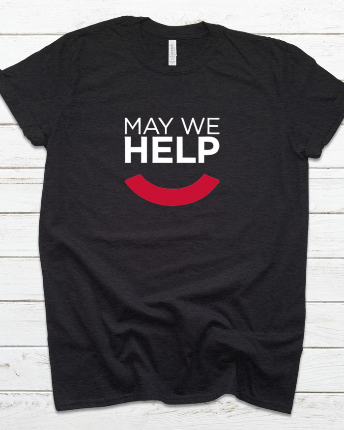May We Help (Black/ Red) on Deep Heather Short Sleeve Tee- Unisex