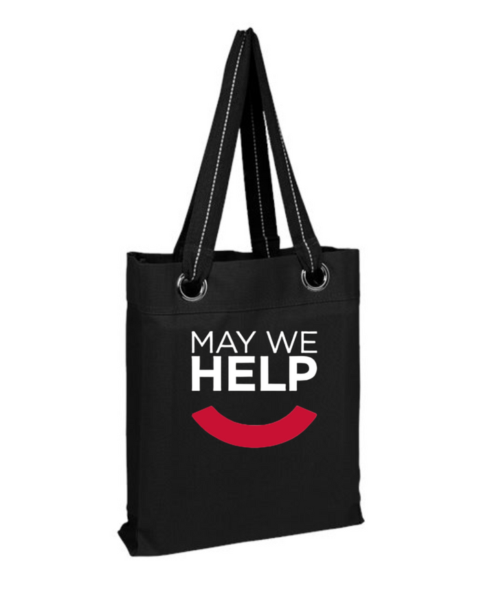 May We Help (White/ Red) on Black Short Sleeve Tee- Unisex