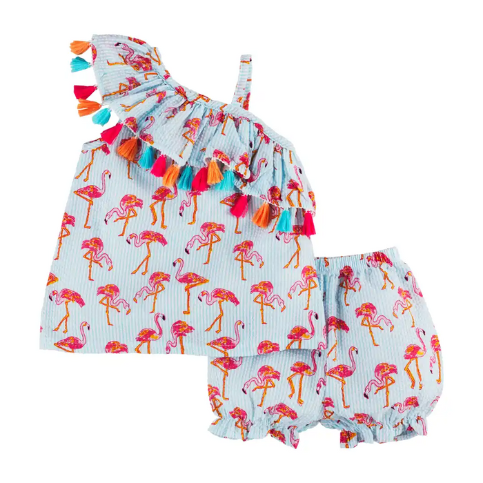 Blue Floral Block Print Charlie Ruffle Top in Blue by Mudpie