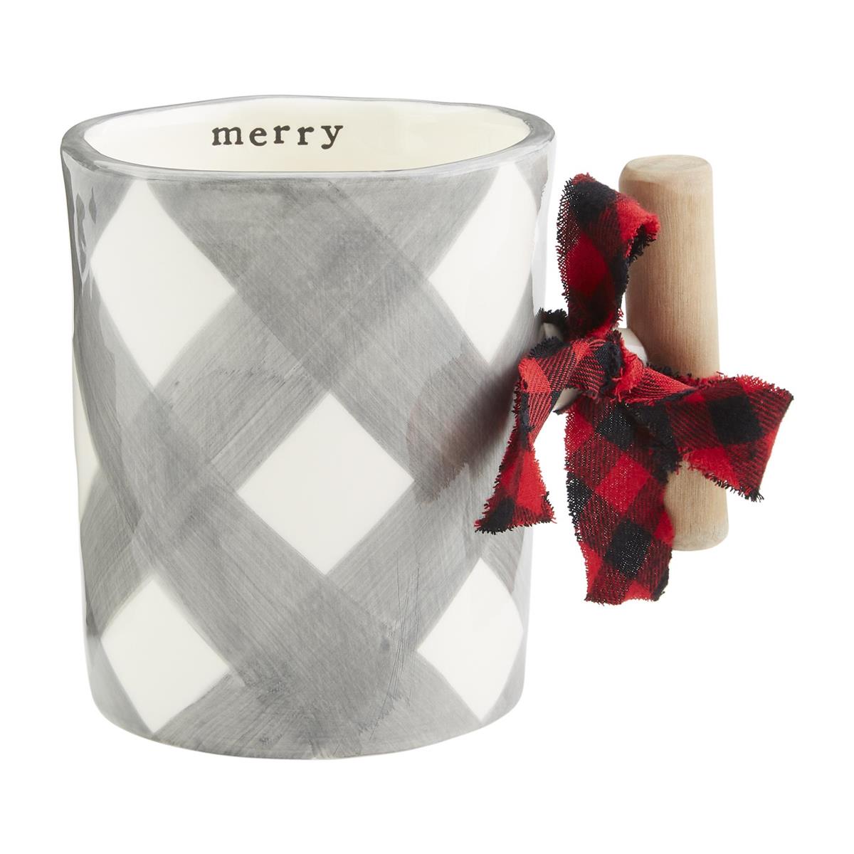 Oversized hand-painted ceramic mug with stamped sentiment and driftwood handle.