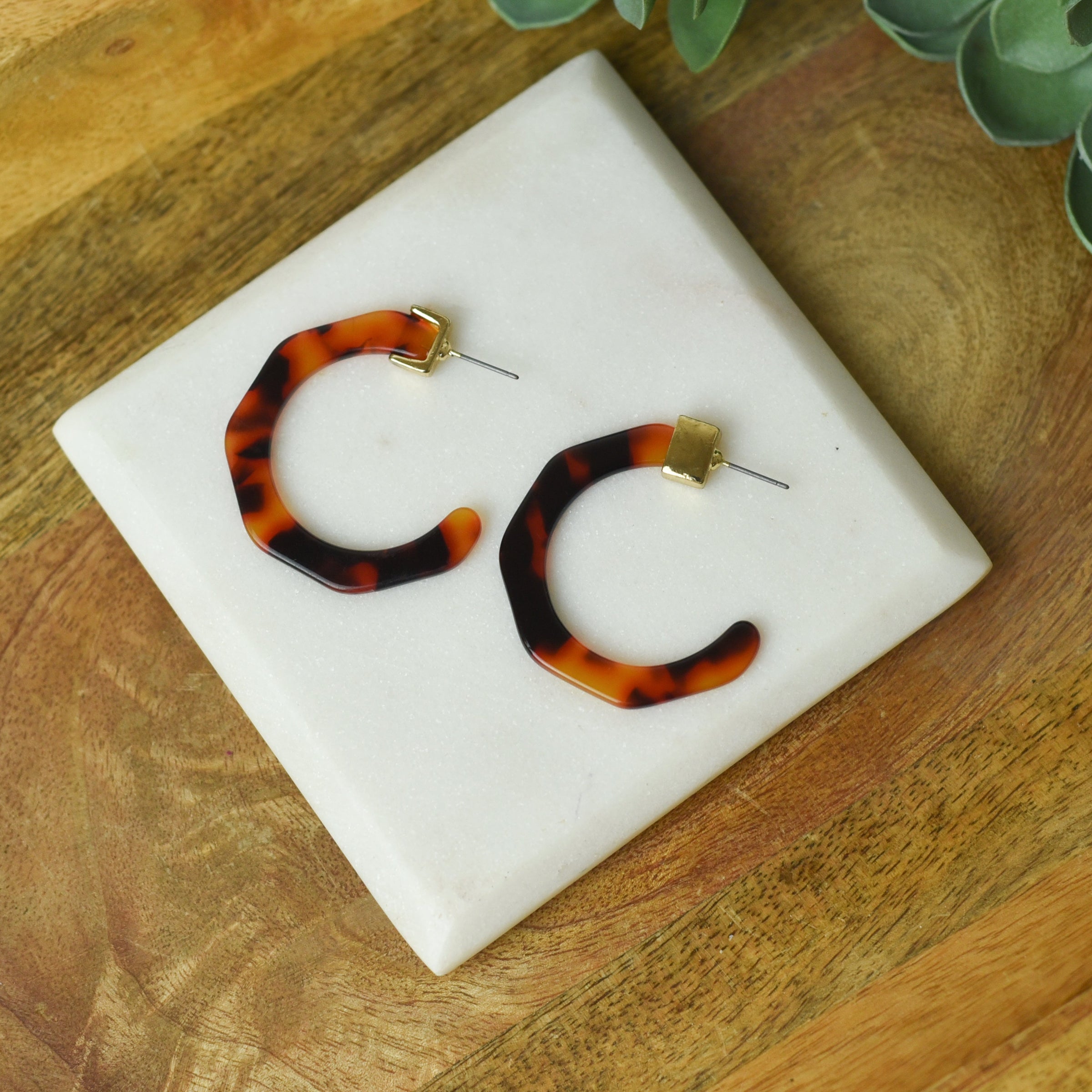 These octagonal hoops have soft lines and gold settings. A smaller cousin to our Lola earrings, these are 1 5/8inches in diameter and approximately 1/4 inch wide.