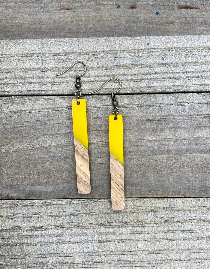 KMD Citron Yellow "Longies" | Wood + Resin Bohemian Earrings