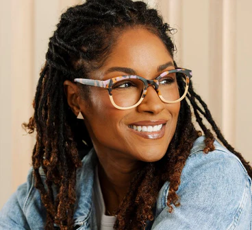 Experience understated elegance with these soft square frames. Georgia combines luxe metallic detailing with a palette inspired by nature's earthy tones such as marble, horn, and tortoise shell. This flattering design provides an effortlessly stylish complement to your ensemble.