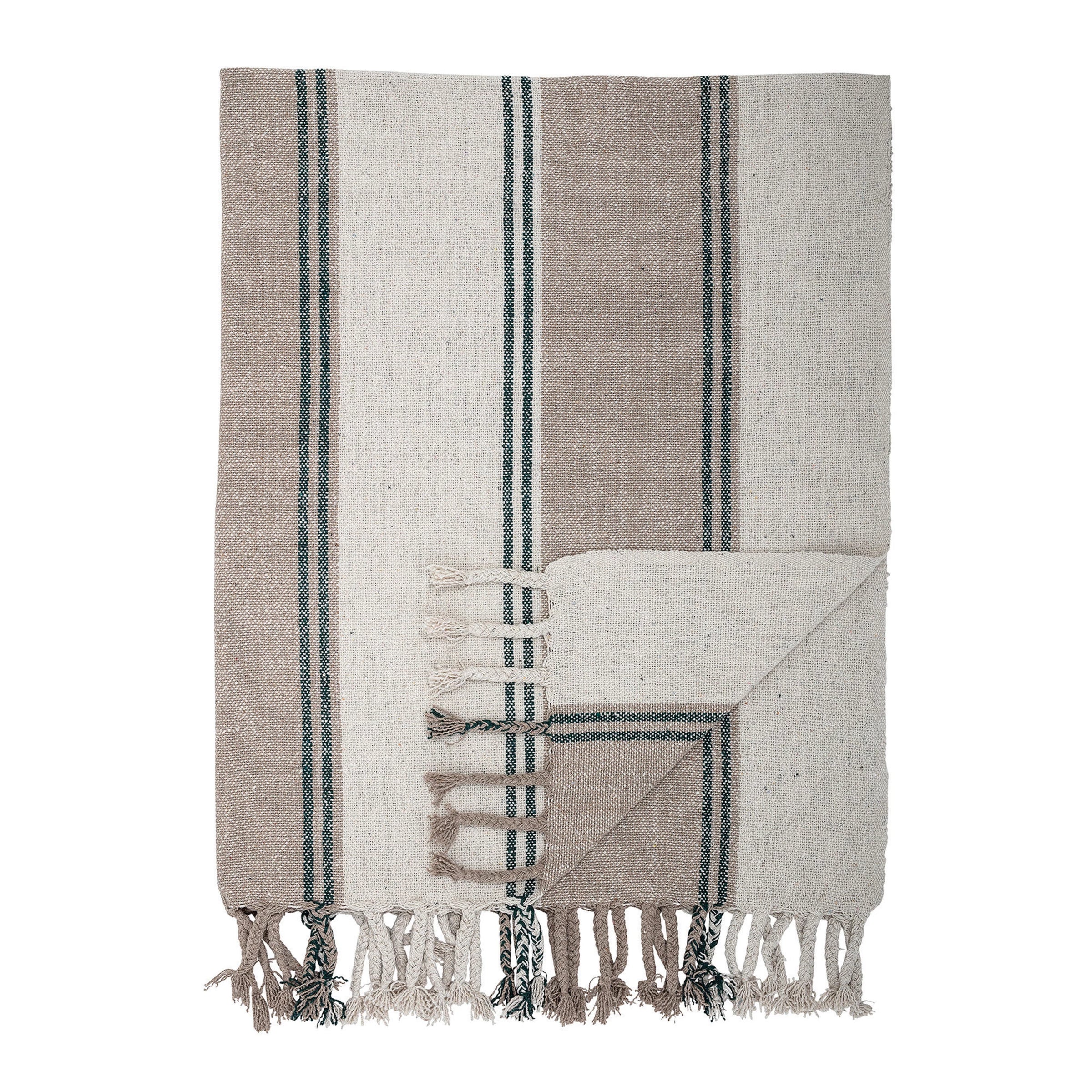 Recycled Cotton Blend Woven Throw w/ Stripes & Fringe, Multi Color