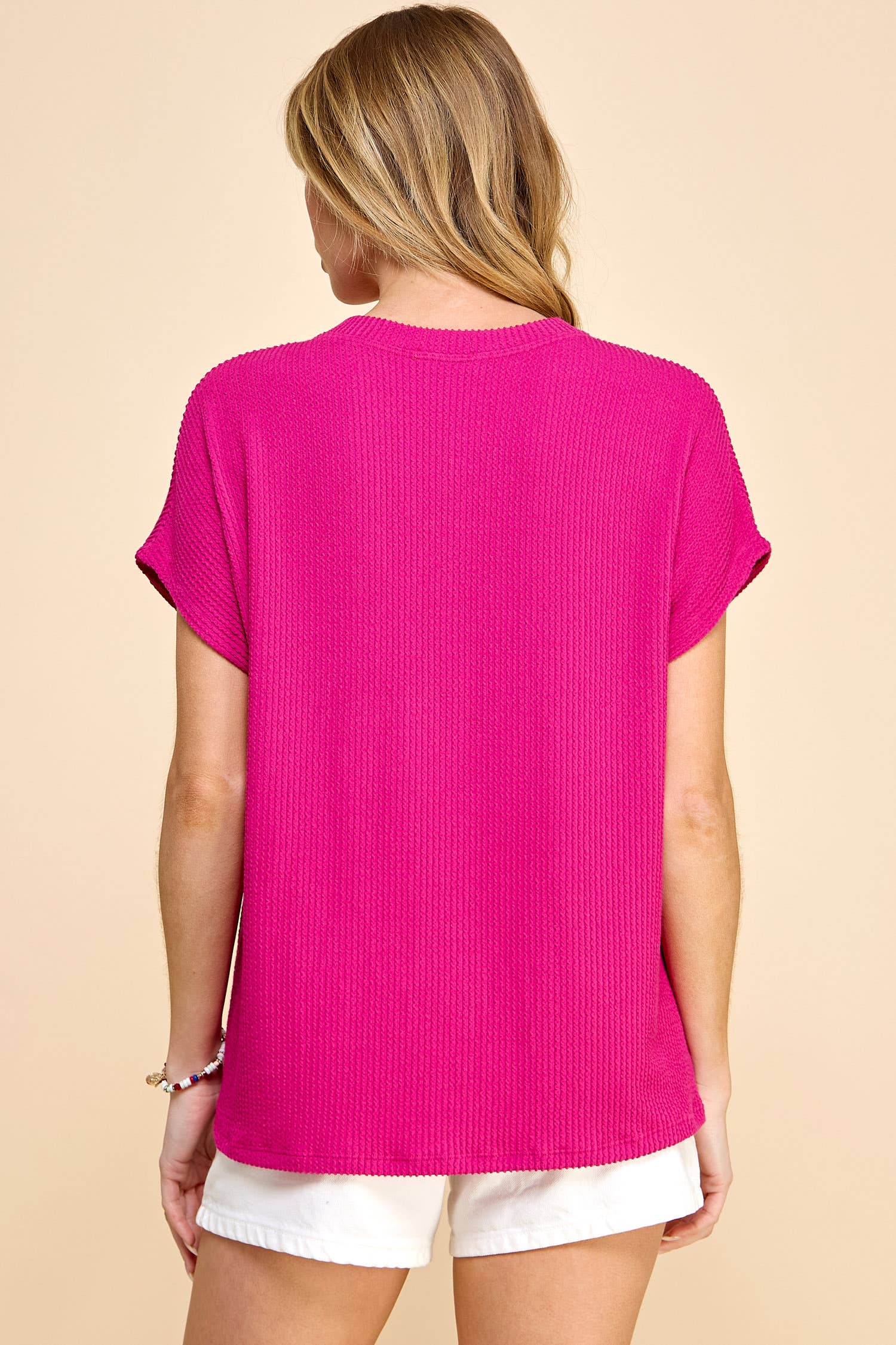 Solid Ribbed Top with Pockets. Elevate your casual style with our Solid Ribbed Top featuring a flattering silhouette and convenient pockets.