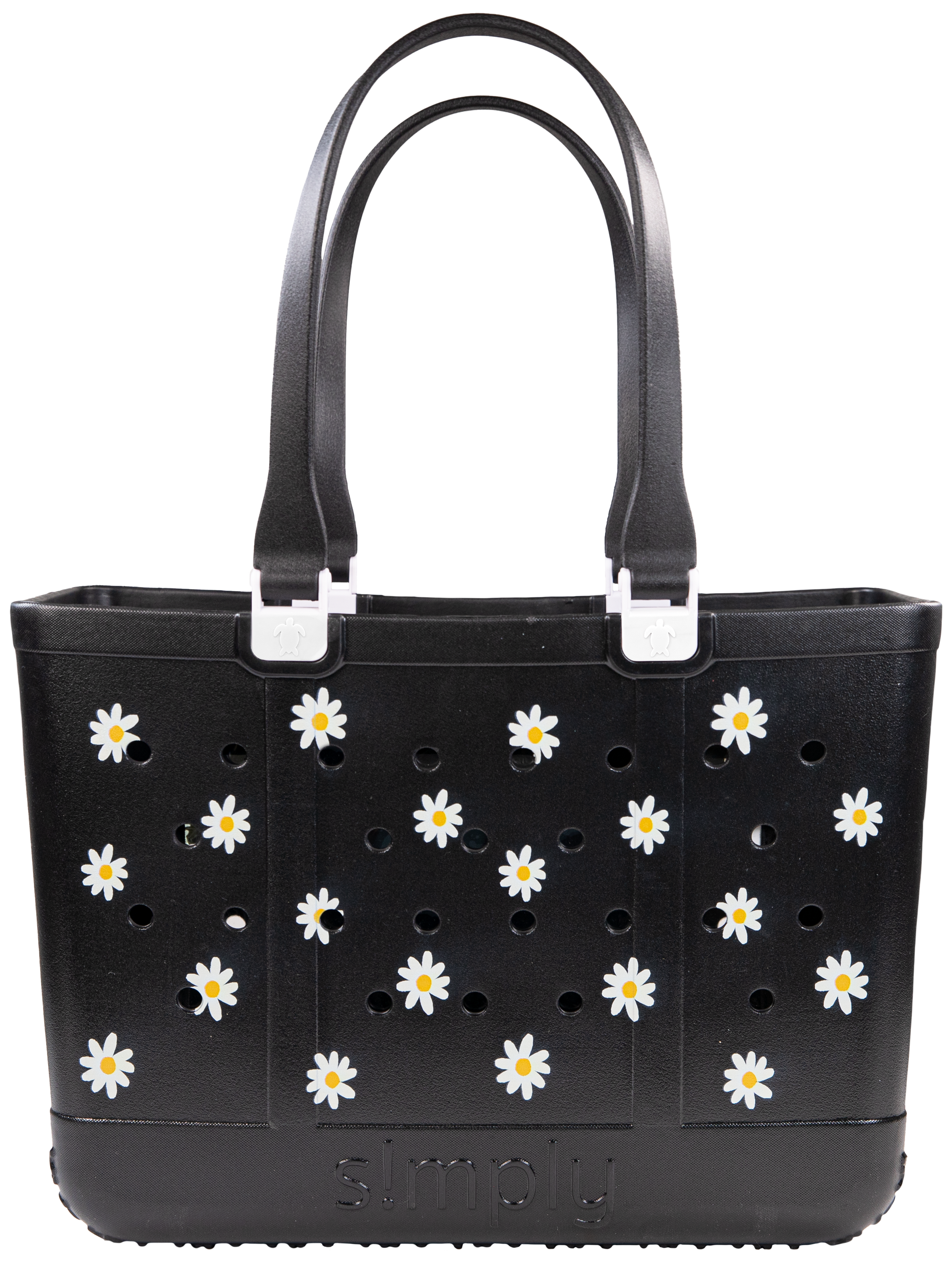 Perfect for a day at the beach or pool, these S!MPLY totes feature holes for charms, a grip bottom design, and water resistant material for easy cleaning.