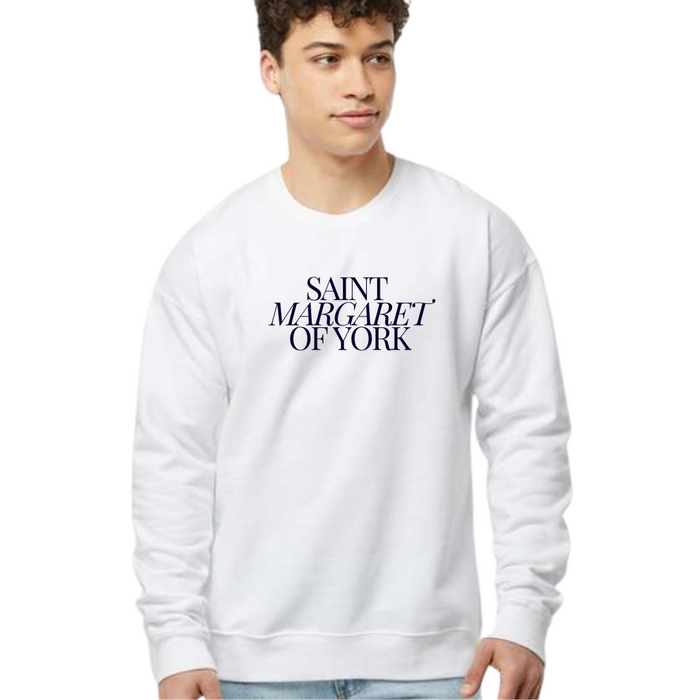 Modern Font Saint Margaret of York Crewneck Sweatshirt on White