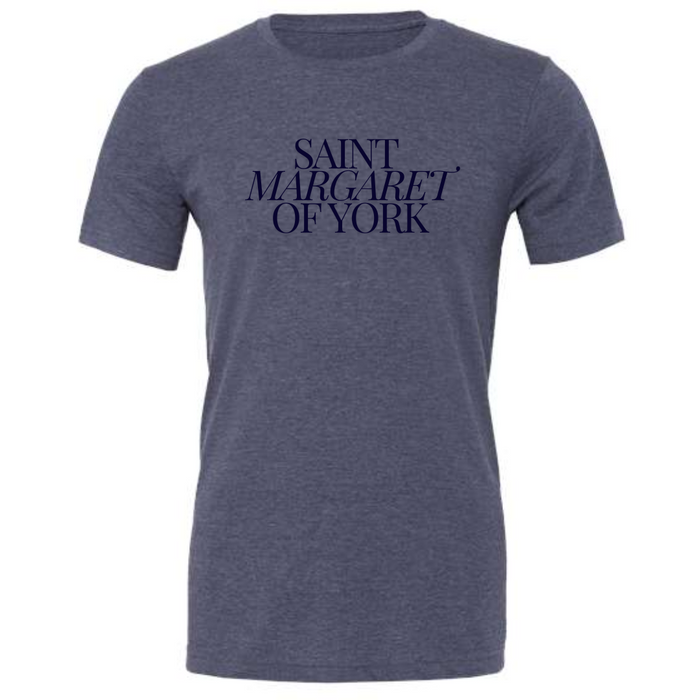 Modern Font Saint Margaret of York Heather Navy Short Sleeve Tee