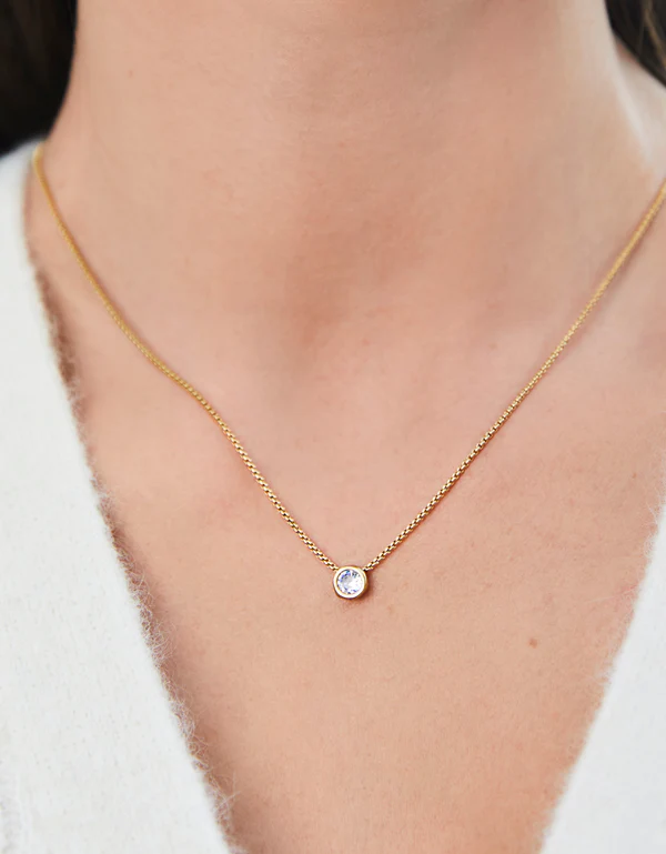 Like a lighthouse sending out hope in the night, this necklace brings a bright sparkling light into your life. You'll never want to take it off, and you don't have to! Designed to shine through everyday wear, exercise, showers and a summer at the beach in tarnish-free 14kt gold vacuum plating. Great for stacking or mixing and matching.