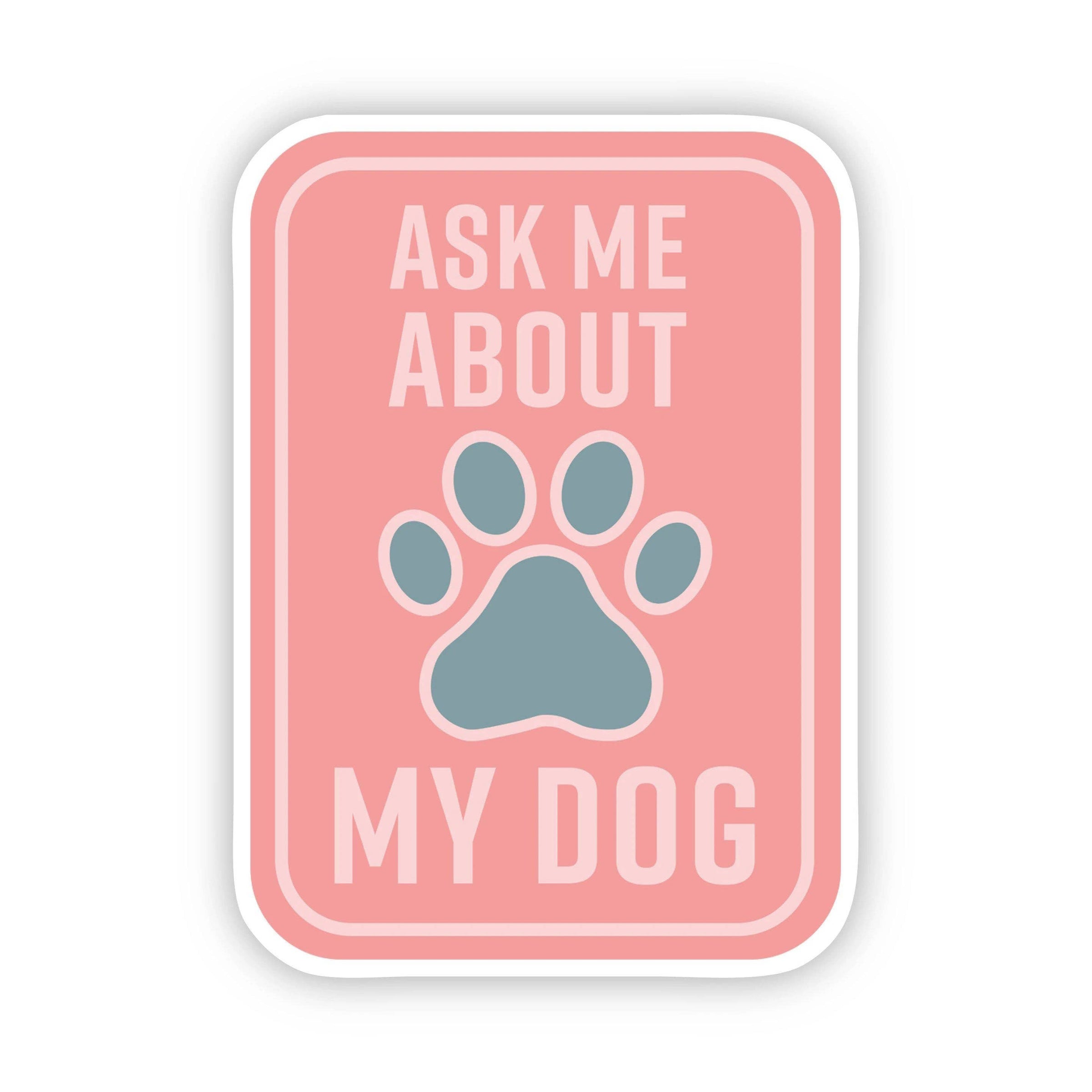 Ask Me About my Dog Blue Sticker in Red