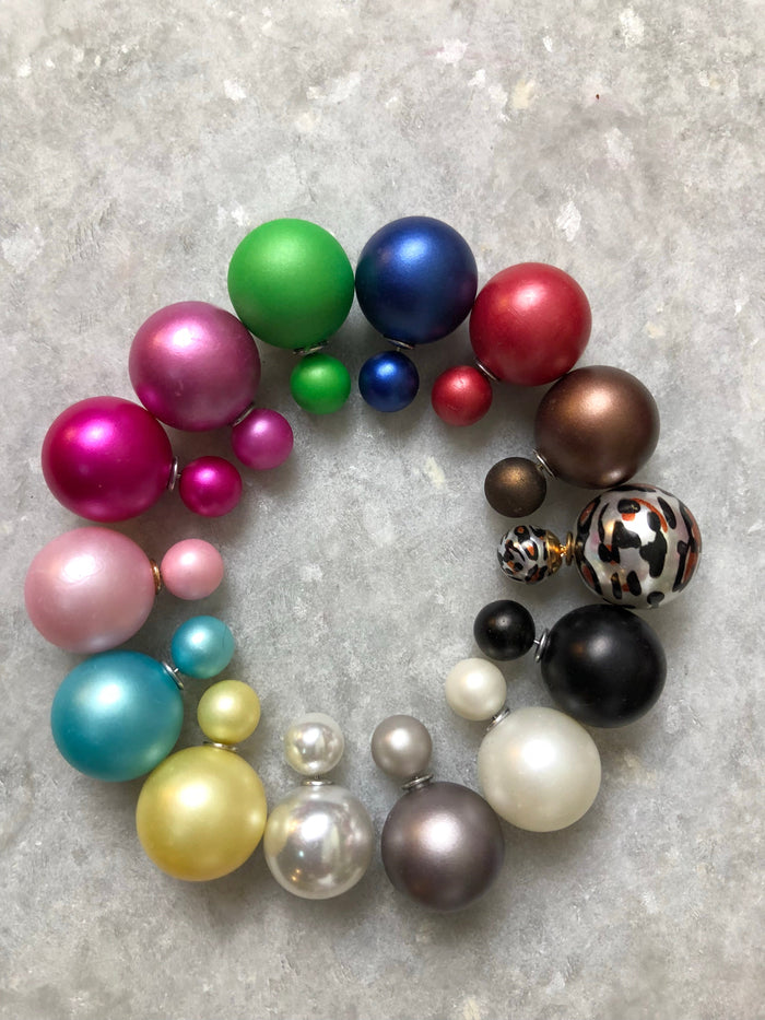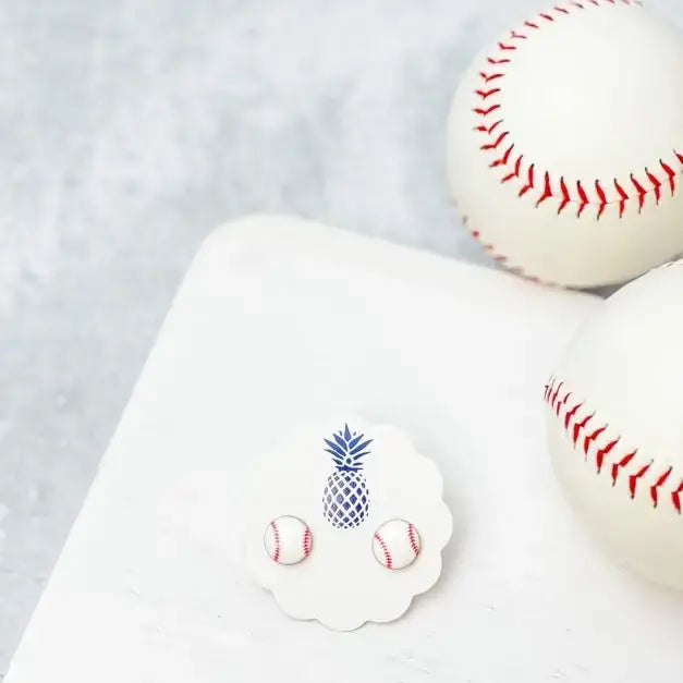 Pom Cheer Stud Earrings in Blue, Orange and White