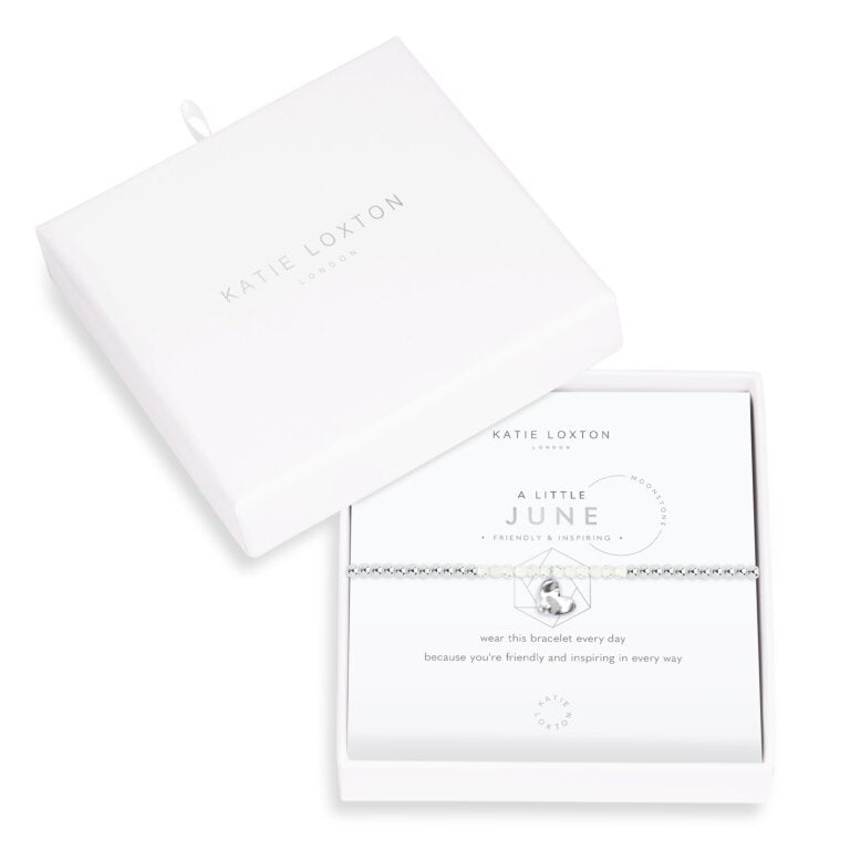 For all June babies, our lovely 'A Little' bracelet radiates birthstone beauty with special moonstones and a gently hammered silver heart charm.