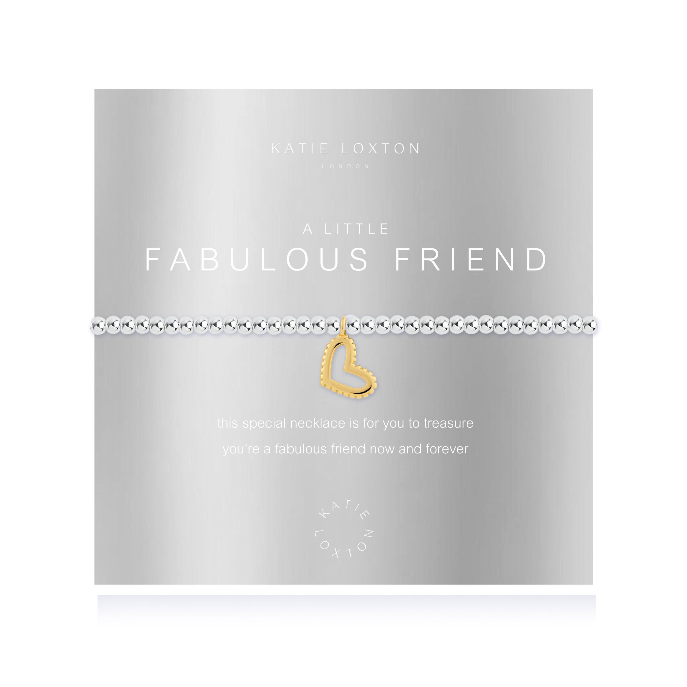 Show just how much you care this season with our Fabulous Friend 'A Little' collection. Our Fabulous Friend 'A Little' Bracelet features a shimmering silver-plated design and gold-plated cut-out heart charm. The finishing touch? This glistening design is wrapped around an oh so special metallic card, stamped with sweet sentiment!