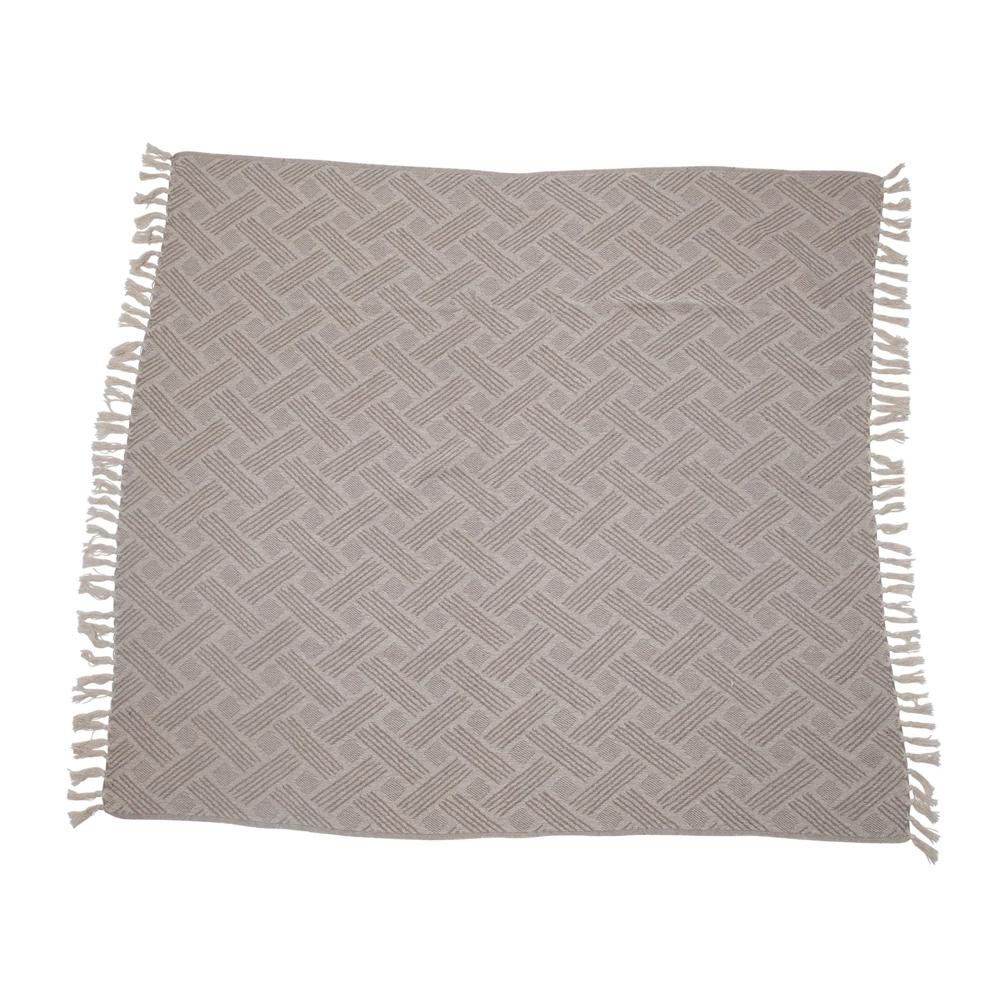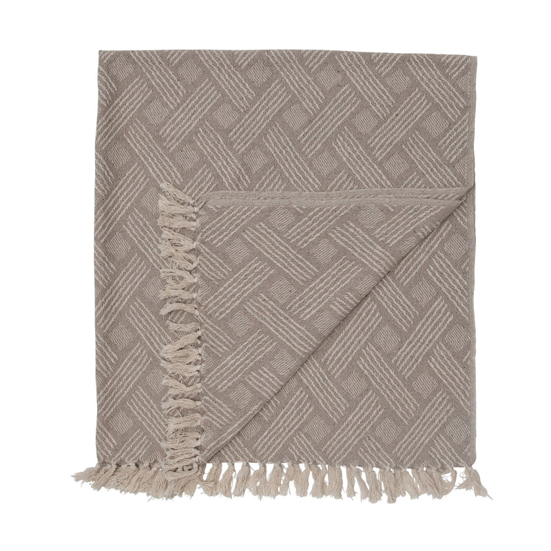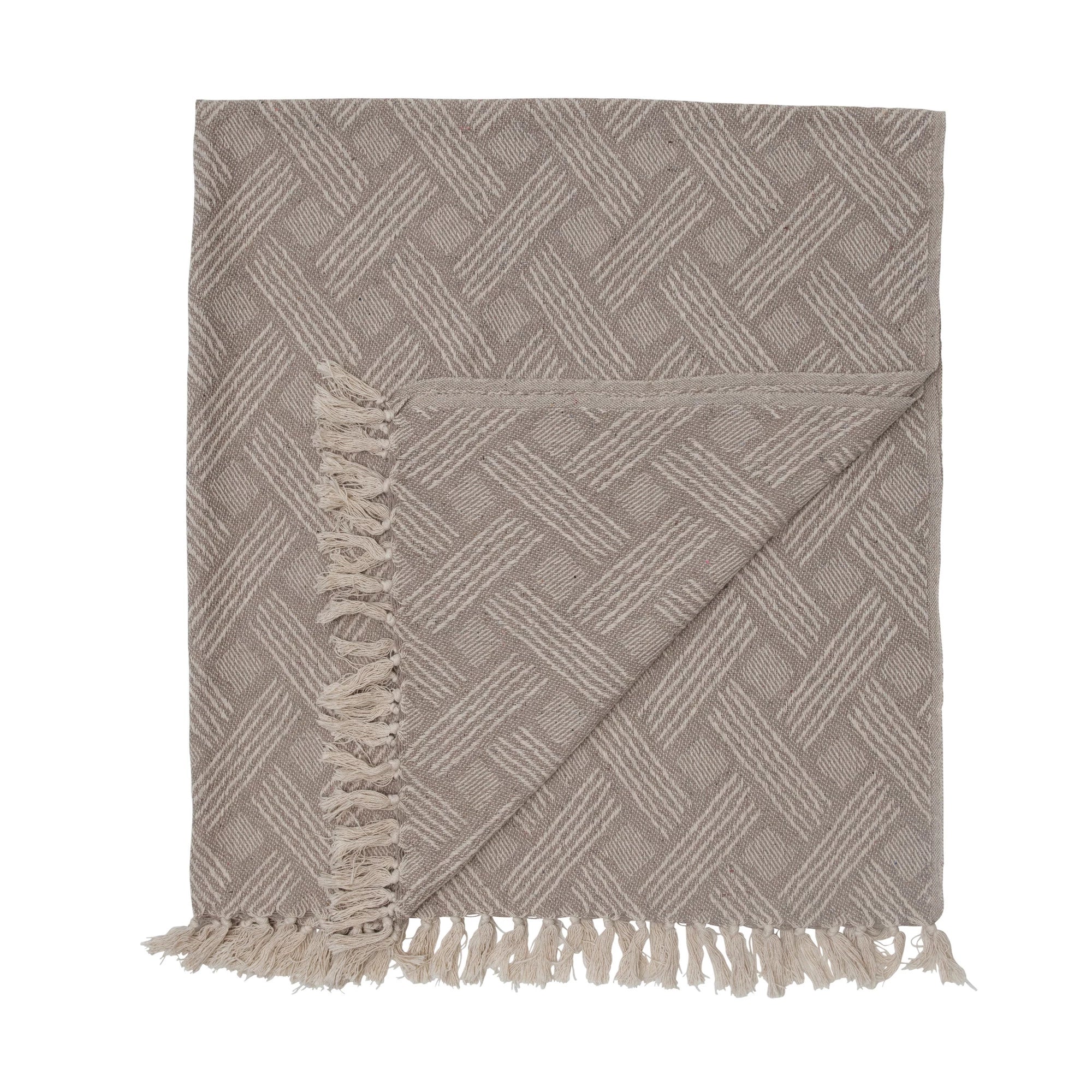 Recycled Cotton Blend Throw with Weave Pattern & Fringe, Natural & Taup