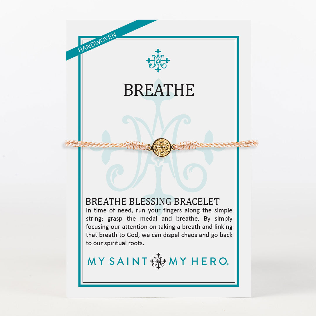 In a time of need, run your finger along the simple string of the Breathe Bracelet; grasp the medal, and just breathe. By simply focusing our attention on taking a breath and linking that breath to God, we can dispel chaos and go back to our spiritual roots. The Breathe Bracelet is your tangible reminder each and every day to stop, breathe, and make space for God.