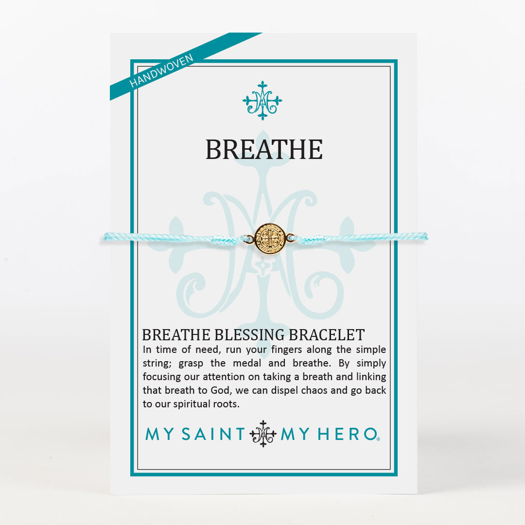 In a time of need, run your finger along the simple string of the Breathe Bracelet; grasp the medal, and just breathe. By simply focusing our attention on taking a breath and linking that breath to God, we can dispel chaos and go back to our spiritual roots. The Breathe Bracelet is your tangible reminder each and every day to stop, breathe, and make space for God.