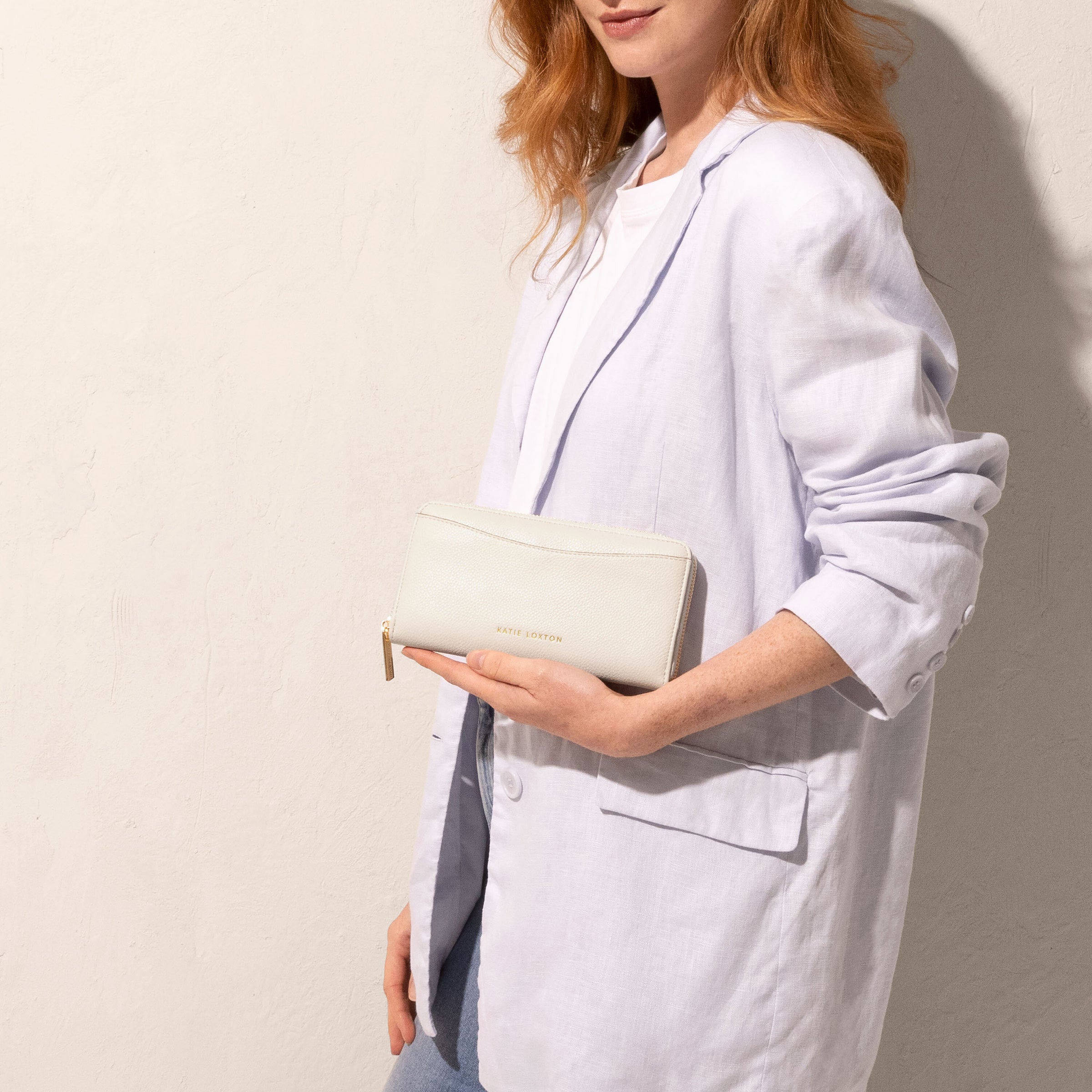 Our Cara Purse in off white is the ultimate day-to-day essential. Oh-so-easy to just pop in your Purse, you will love the embossed logo stamp and slit compartment to the front, and the chic gold-tone zip fastening - paying for your morning coffee never looked so good!