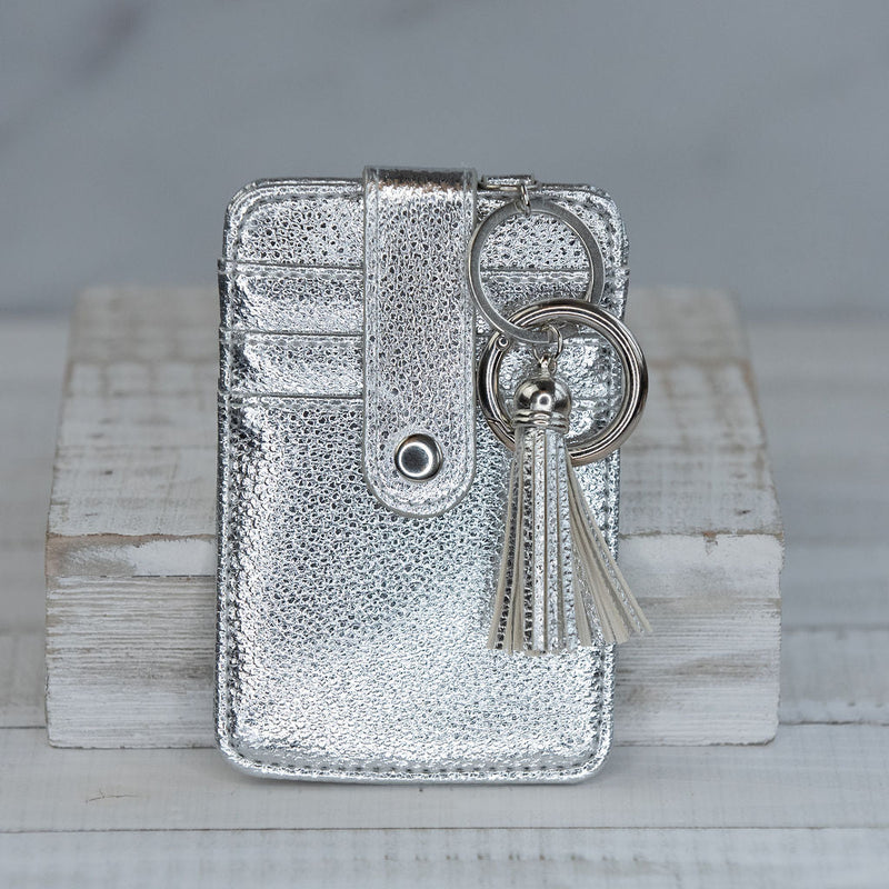 The Card Clutch Keyring By Lauren Lane offers a unique fusion of convenience and style. Crafted using vegan leather, this keyring features a slim card wallet that allows you to store your cards in a secure and accessible way. With a slim design and sophisticated look, it's perfect for on the go.