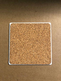 Coasters are 4”x 4” and made with resin with a cork backing and round corners. Made in the USA.