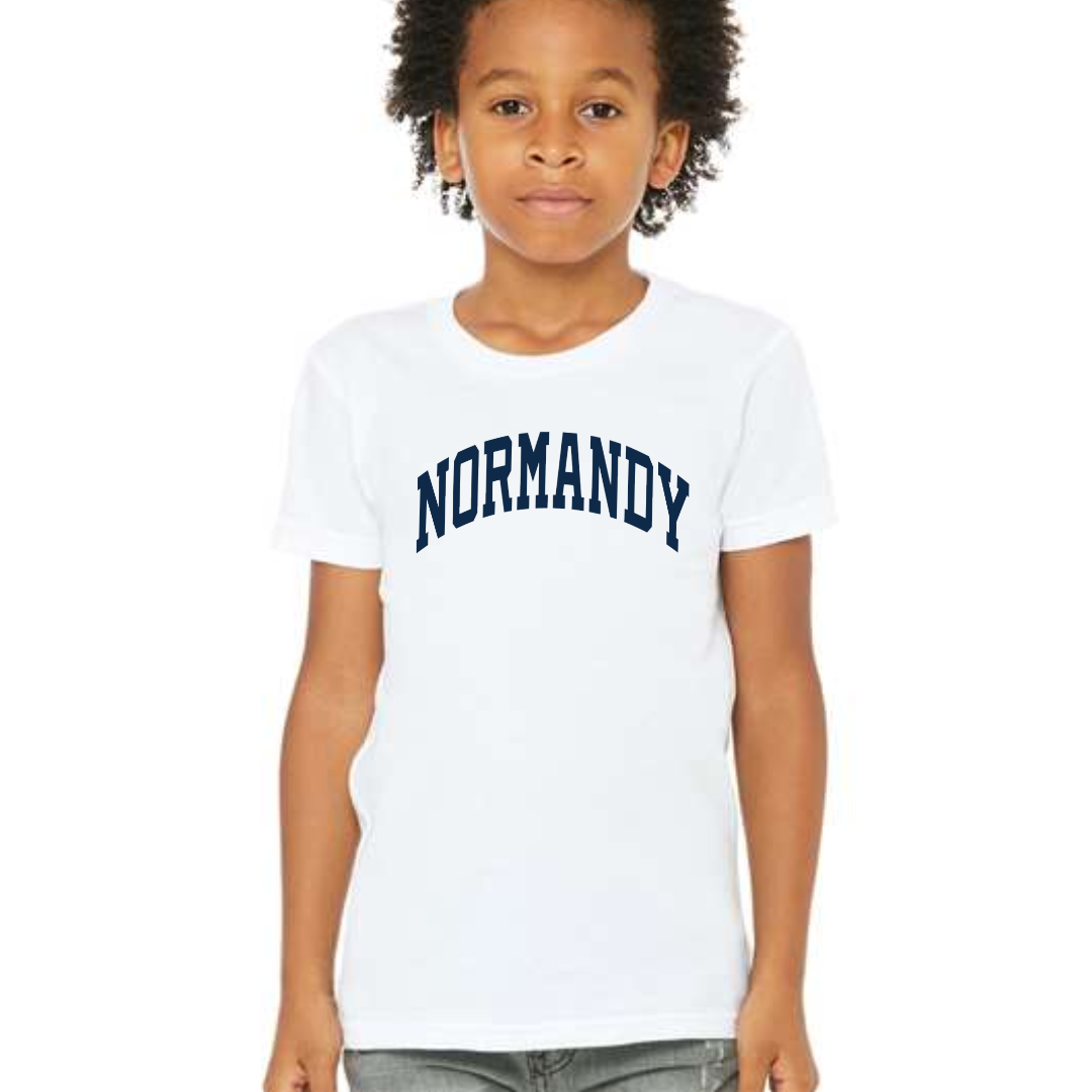 Curved Navy Normandy T-Shirt on White-YOUTH