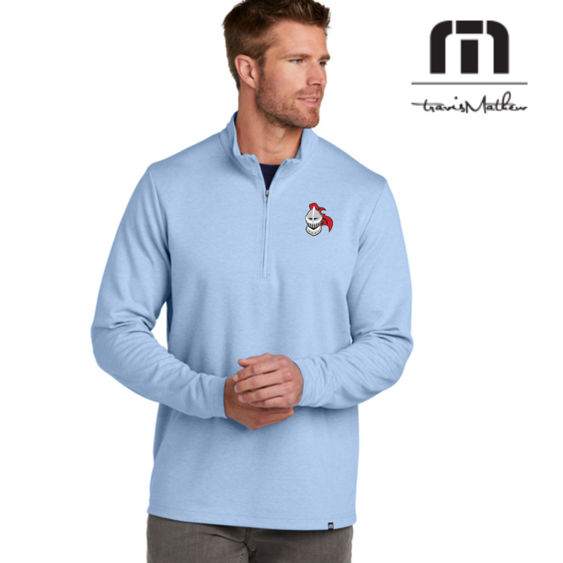 Embroidered Kings Travis Matthew Quarter Zip in Light Blue Heather