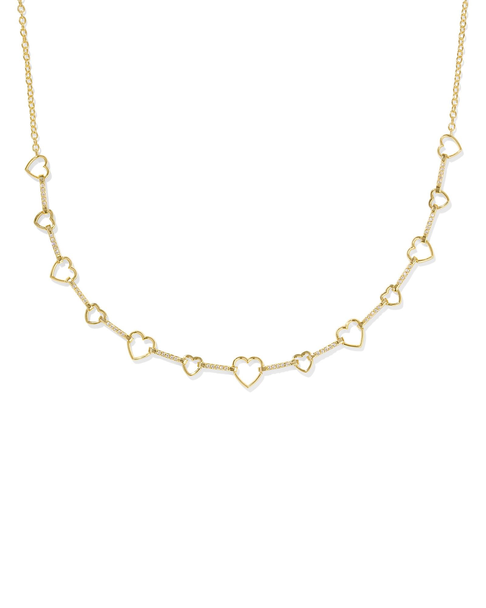 Haisley Heart Strand Necklace in Gold White Crystal by Kendra Scott