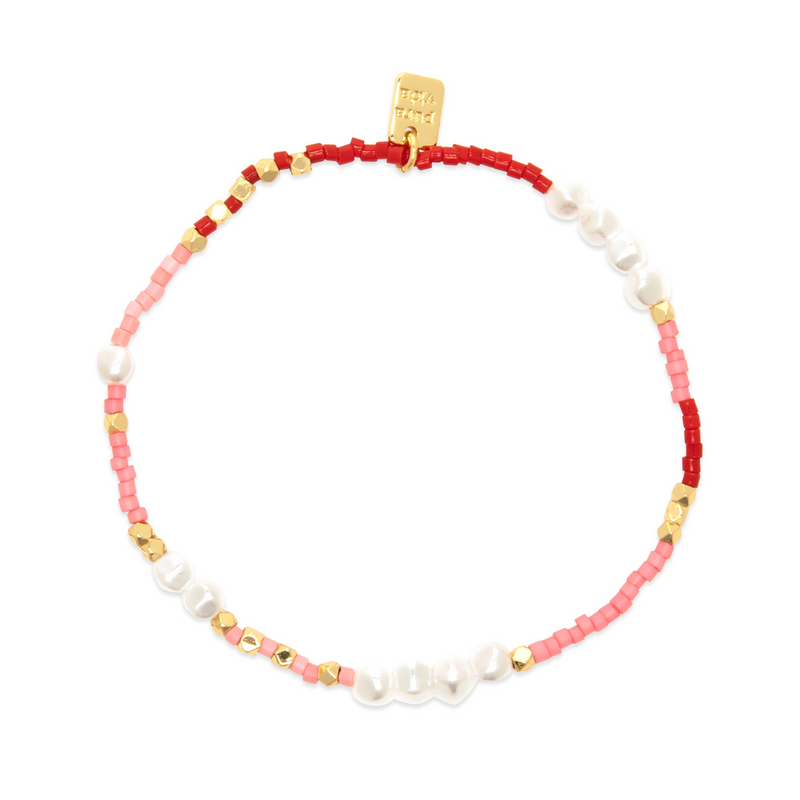Fall head over heels with the Heart Eyes Stretch Bracelet, the perfect Valentine’s Day accessory. Featuring a dreamy mix of red and pink beads, lustrous pearls, and charming heart-shaped pearl accents, this bracelet is a sweet symbol of love and affection.