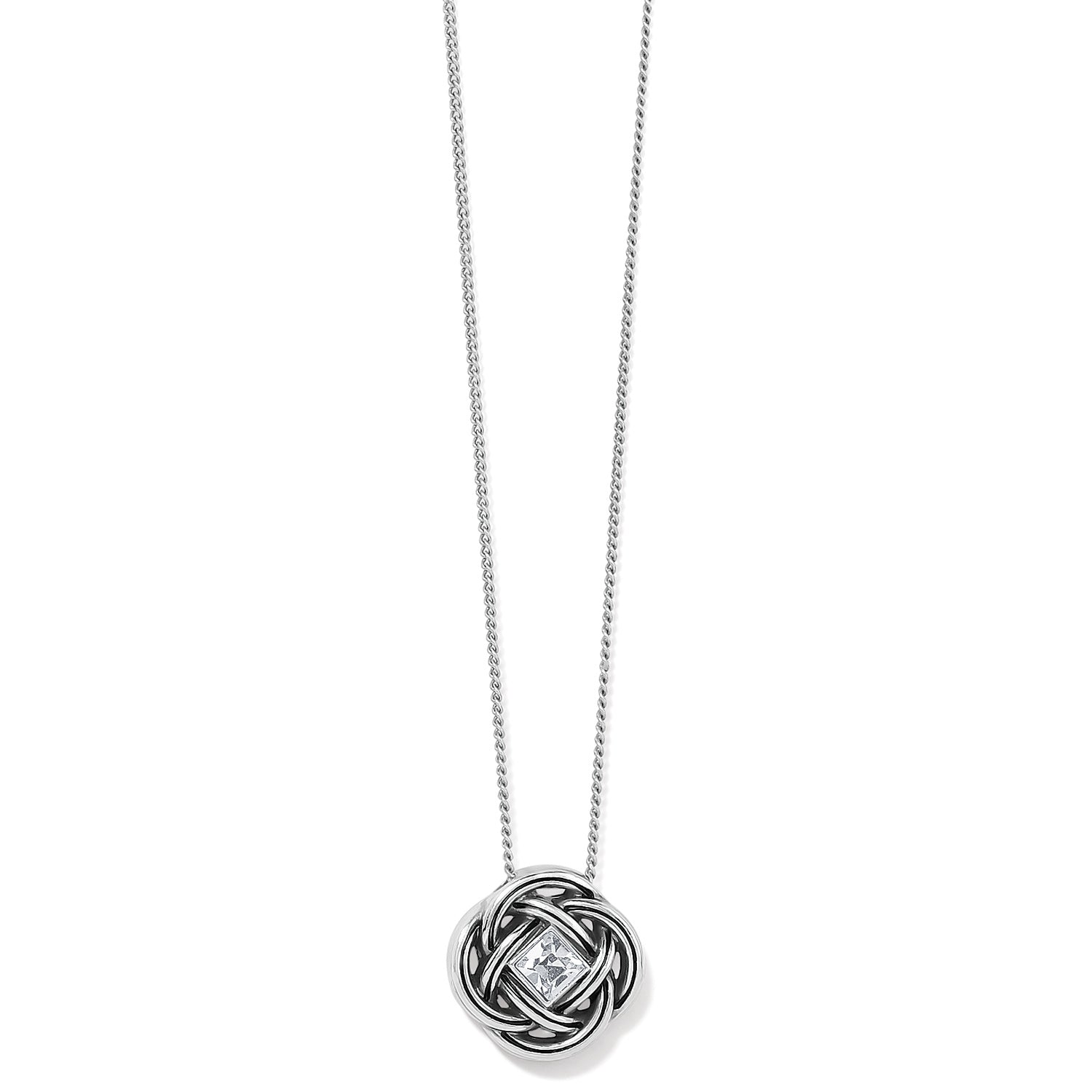 A touch of sparkle decorates the silver interlaced Celtic weave design necklace accented with a square glistening crystal – giving it more versatility to dress up, layer or mix with other silver pieces for an eclectic modern look.