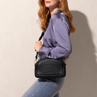 You can make a statement this summer with our Keira Half Moon Purse. A top-rated shape for us, this fun style features gold-tone hardware and top zip fastening, it also has gorgeous chain-link loops on the strap!